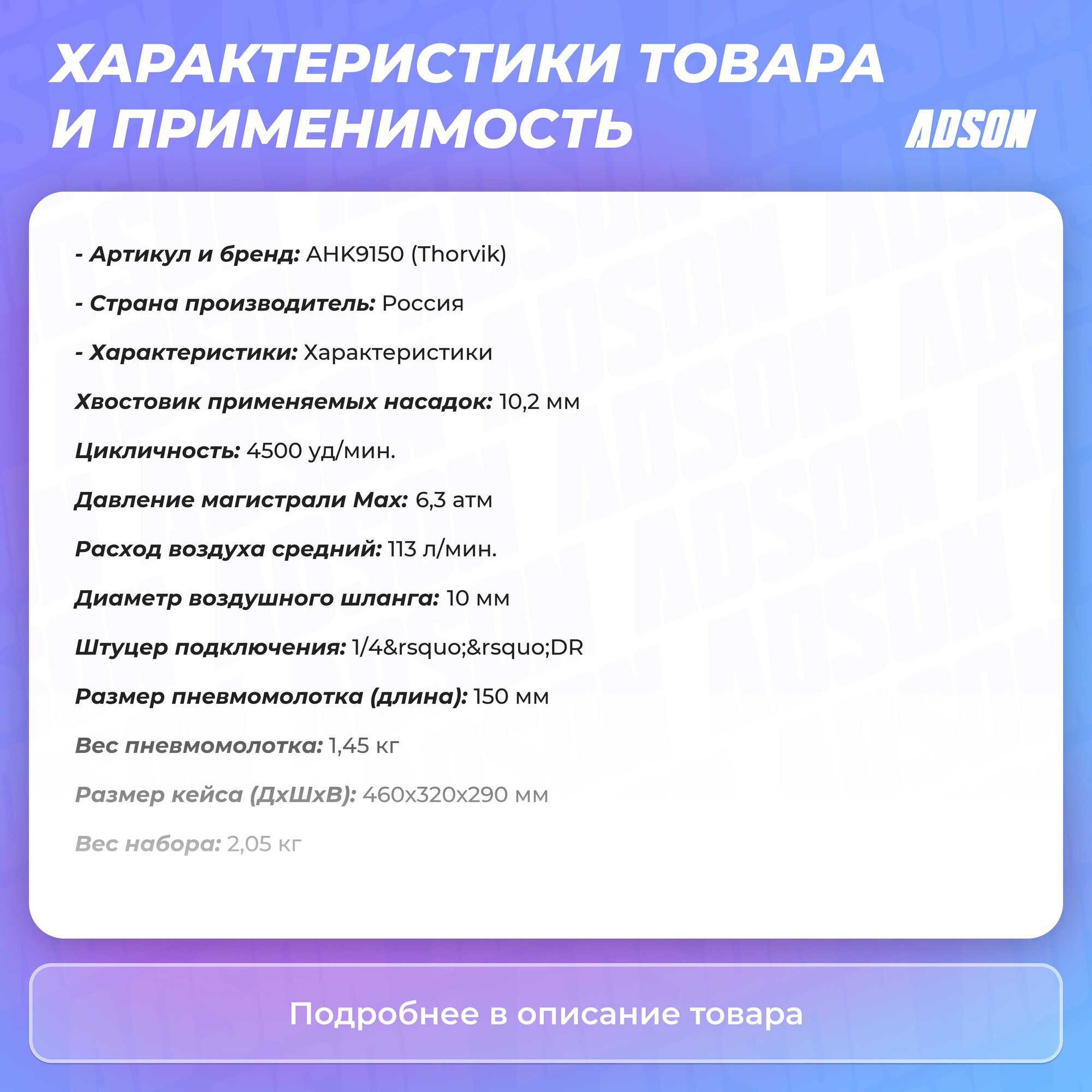 Молоток пневматический 150 мм в наборе с насадками, 9 предметов Thorvik интересное: