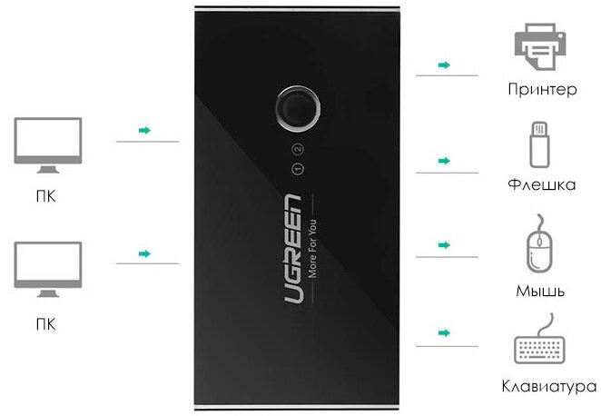 Многофункциональный разветвитель UGREEN на 4 порта USB для одновременного подключения устройств к двум компьютерам