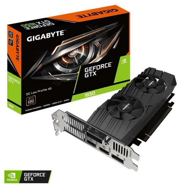 Видеокарта GigaByte GTX 1650 D6 OC Low Profile 4G 1620Mhz PCI-E 3.0 4096Mb 12000Mhz 128 bit 2xHDMI 1xDP GV-N1656OC-4GL