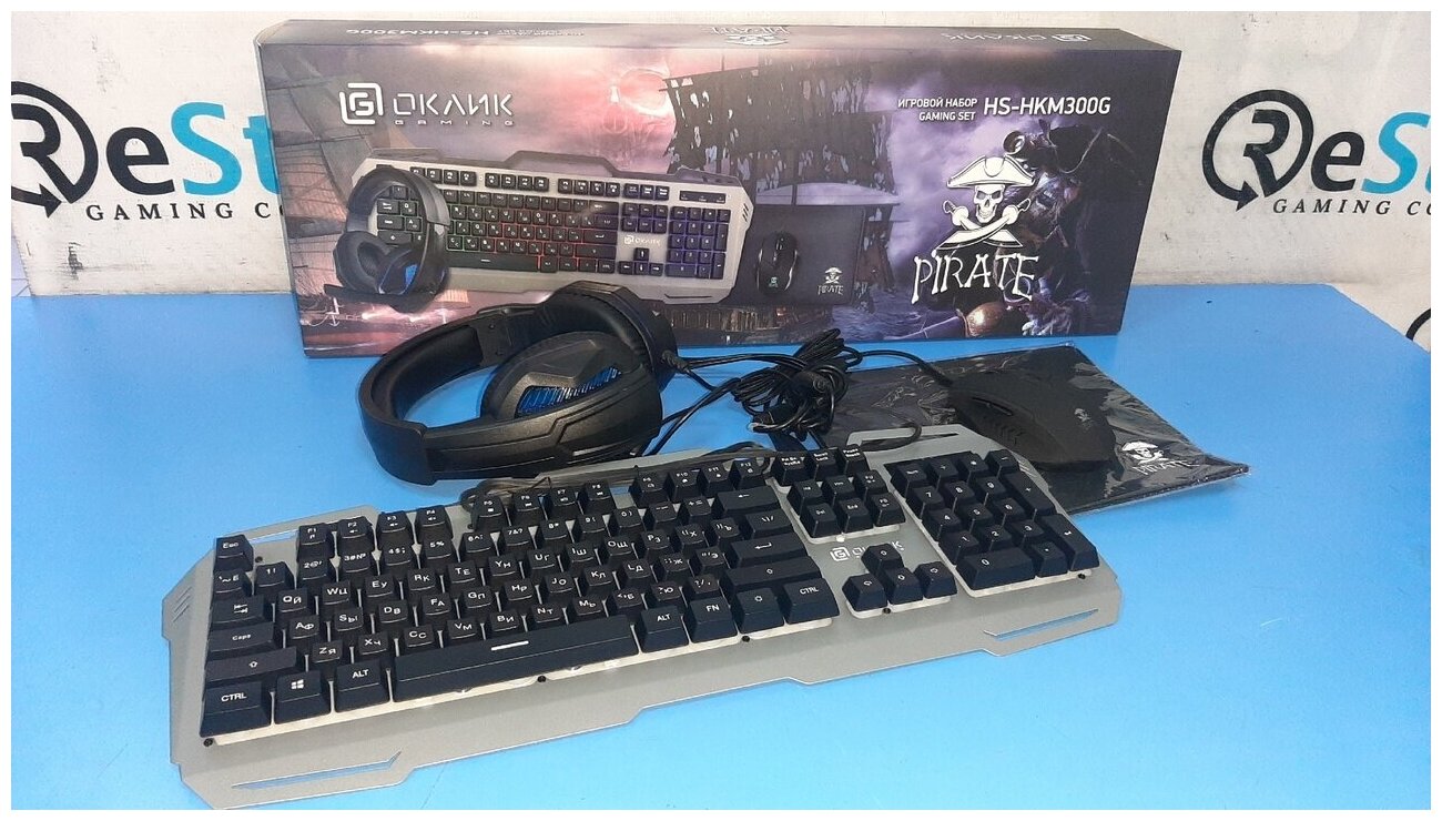 Клавиатура OKLICK HS-HKM300G PIRATE (клавиатура, мышь, коврик для мыши, гарнитура) черный (1103554) интересное: