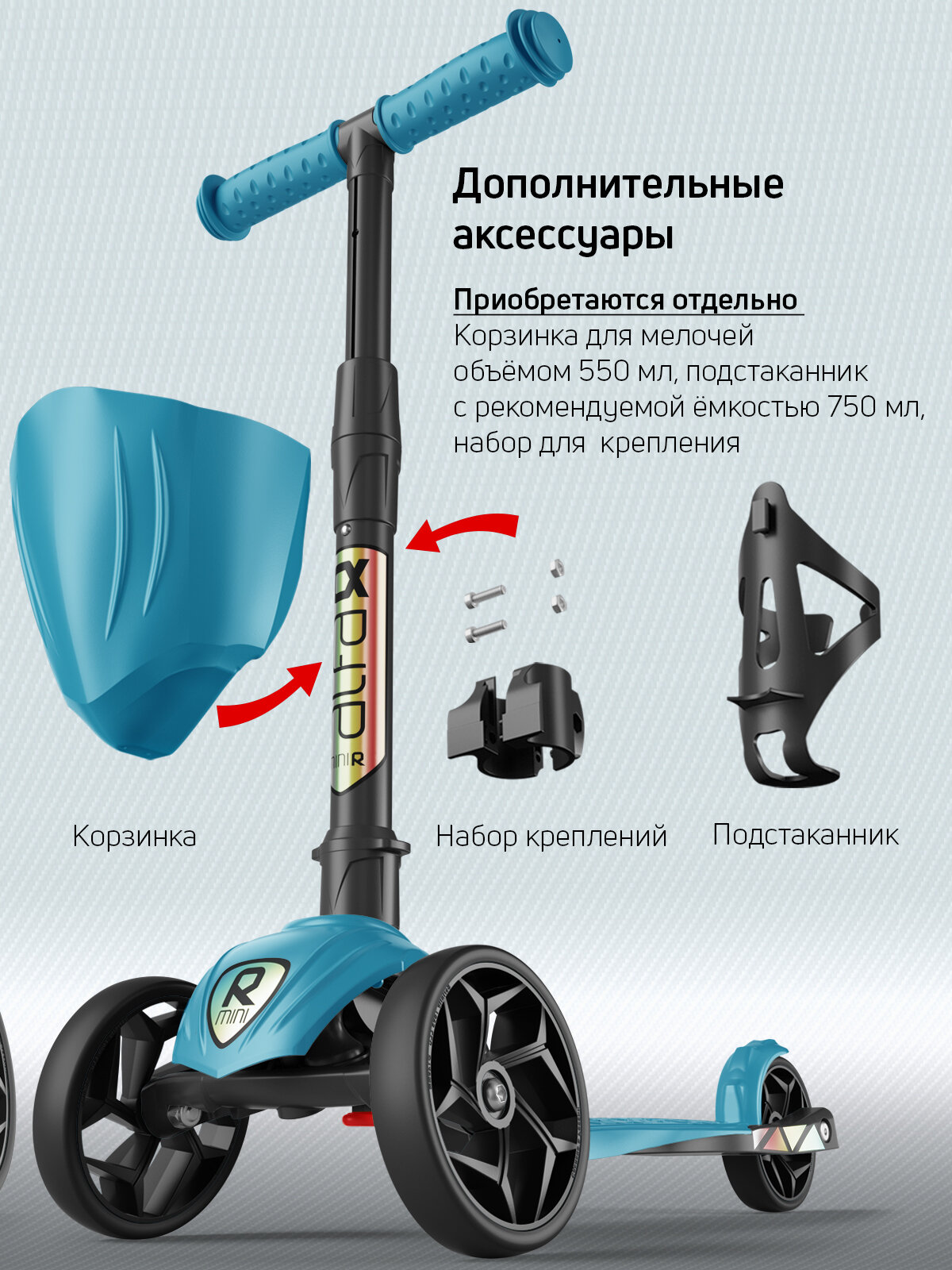 Самокат, самокат трехколесный детский, с цветными ручками Buggy Boom Alfa Mini R, голубой флюр