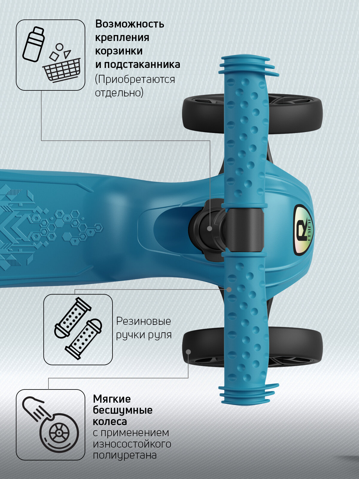СохранитьСамокат, самокат трехколесный детский, с цветными ручками Buggy Boom Alfa Mini, бирюзовый интересное: