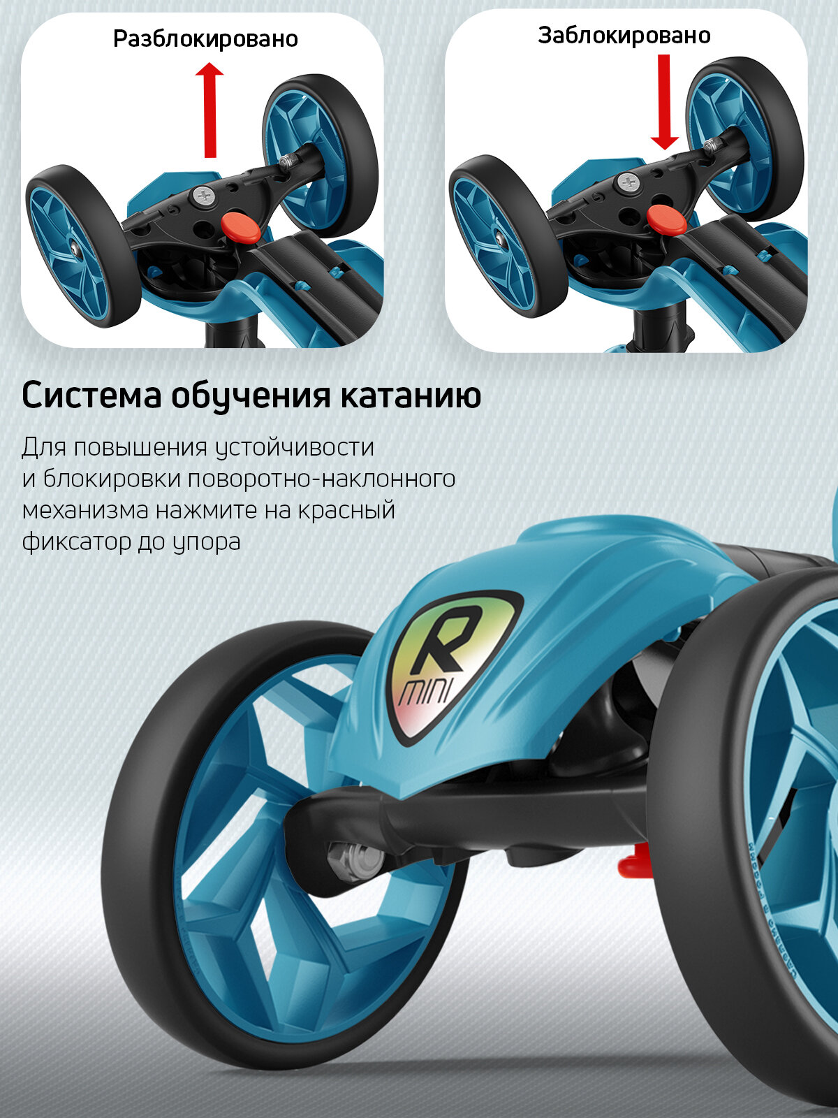 Порадовало , что можно заблокировать поворот руля. Малышке 1.3, только осваиваем самокат, так я за безопасность не переживаю Надеемся, в следующем году будут ещё со светящимся колёсами будут |