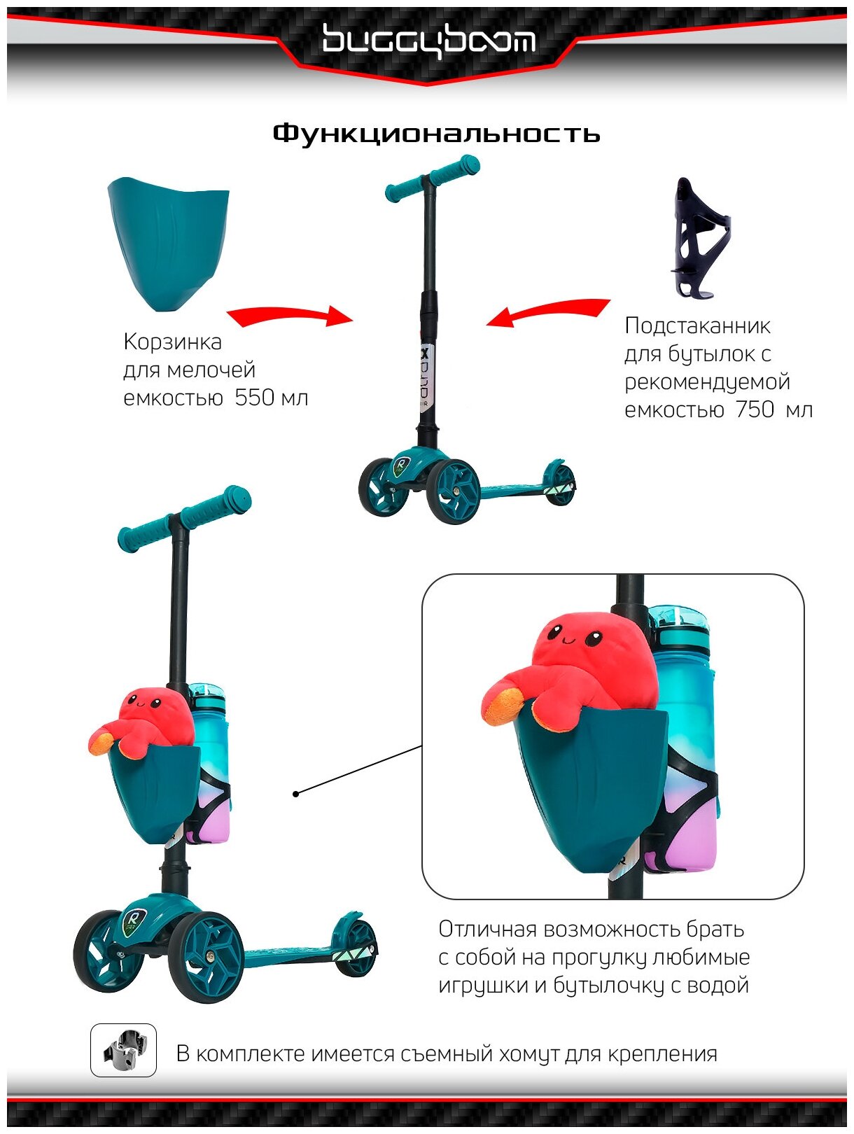 Самокат детский трехколесный с корзинкой и подстаканником для бутылок от Buggy Boom