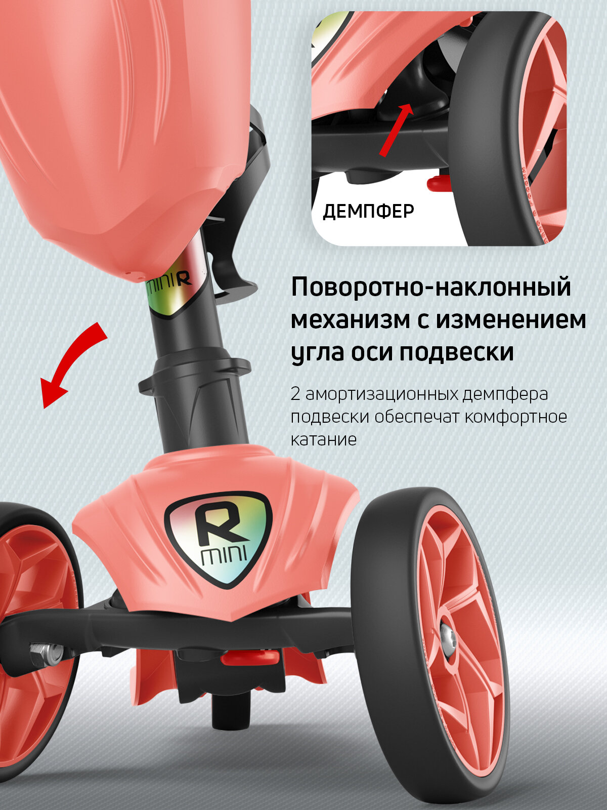 Самокат, самокат трехколесный детский, с корзинкой и подстаканником для бутылок, Alfa Mini, коралловый