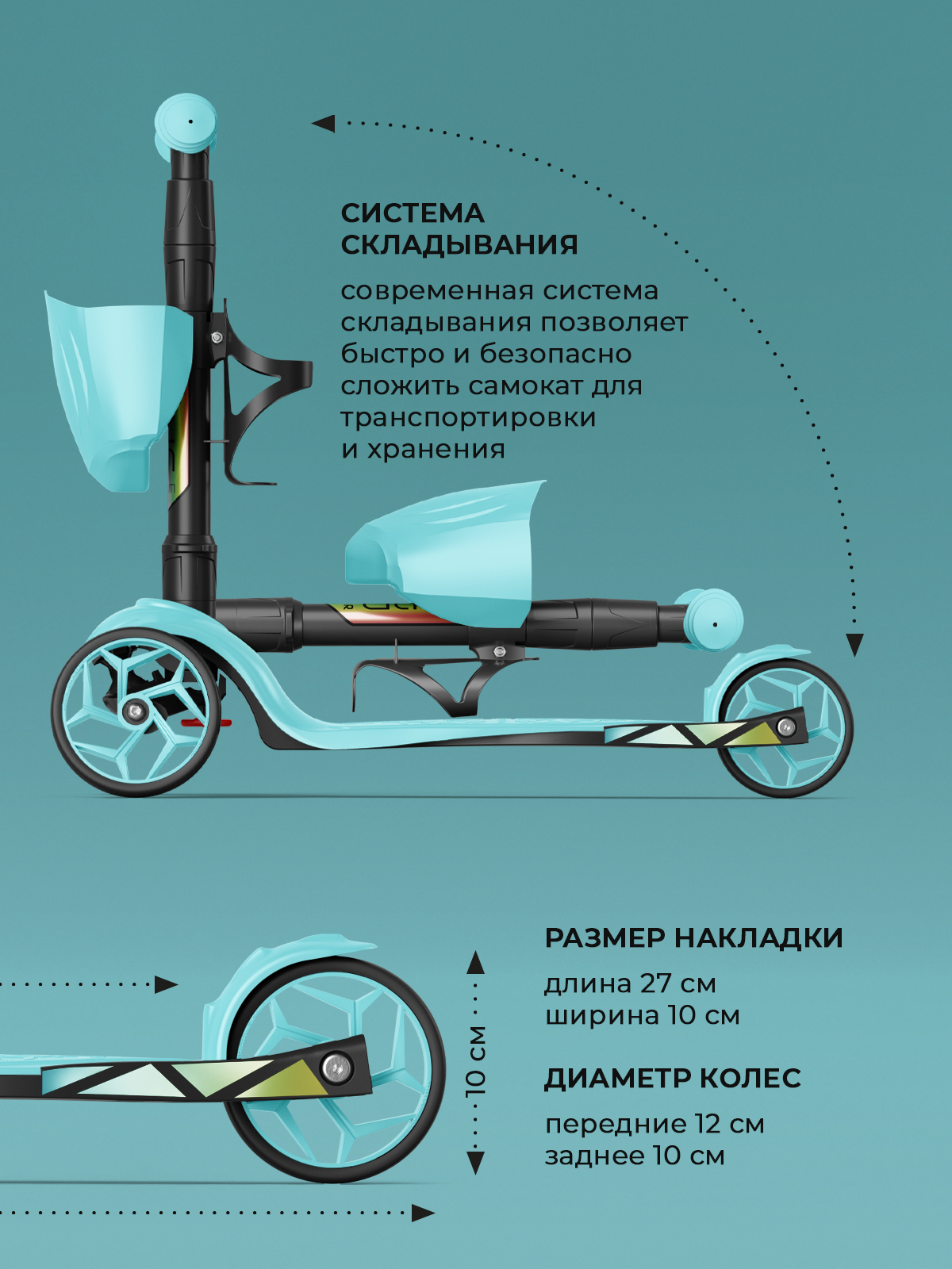 | Плюсы: | Складной механизм, наклейки в комплекте , фиксатор колёс |