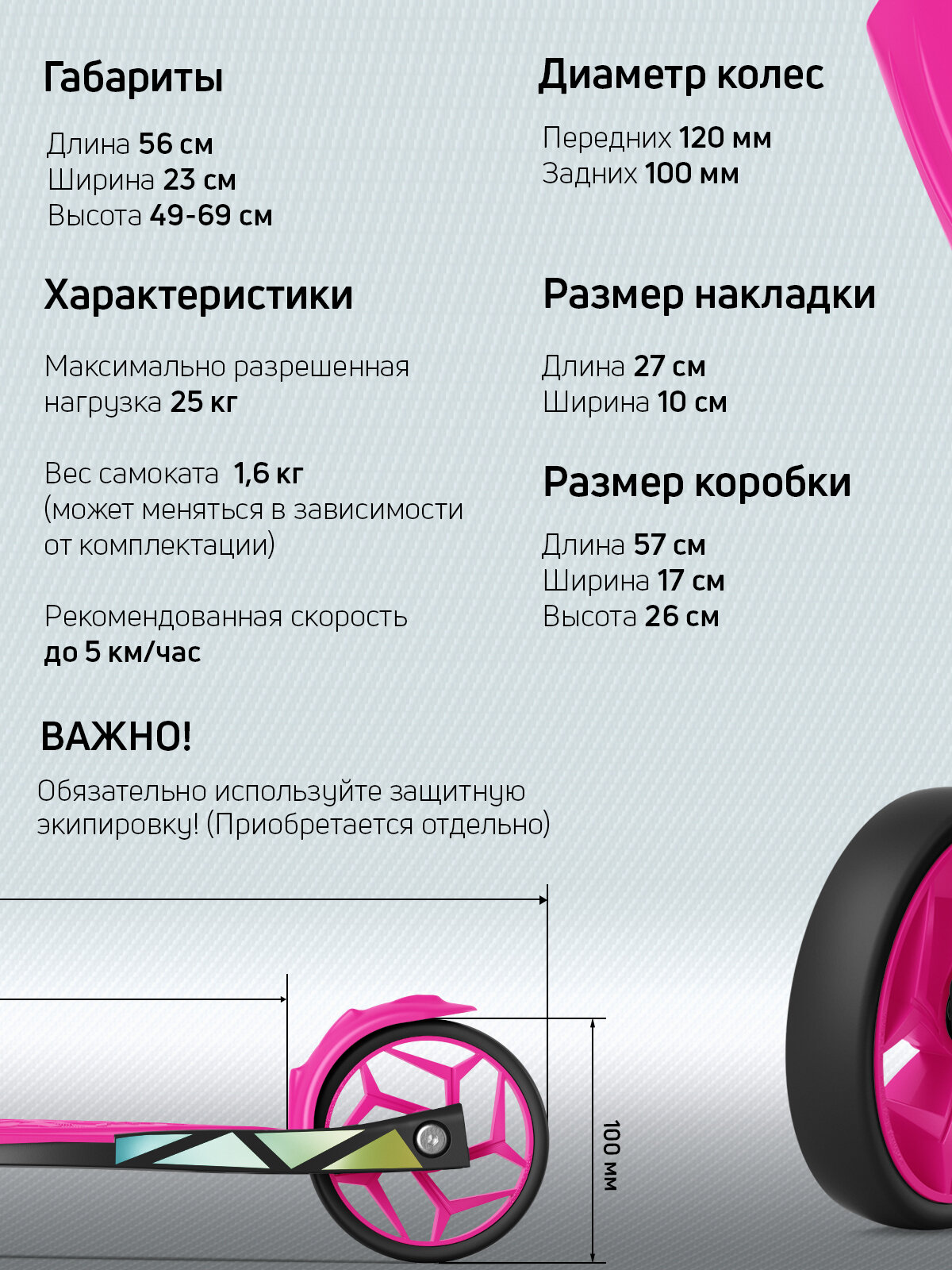 | Дополнительная информация | в коробке, двухсторонние колёса; диаметр заднего колеса: 100 мм; ширина деки: 10 см; класс подшипника: ABEC 7; минимальная высота рулевой стойки: 49 см; вид тормоза: наступной; подробная комплектация: самокат; инструкция; шестигранный ключ;а; Гарантийная карта; транспортировочная коробка; набор голографических наклеек; стикерпак "Смайлы"; стикерпак "буквы"; корзинка; подстаканник; карта магазинов Производителя; материал колес: пластик, полиуретан; материал деки: пластик; длина деки: 27 см |