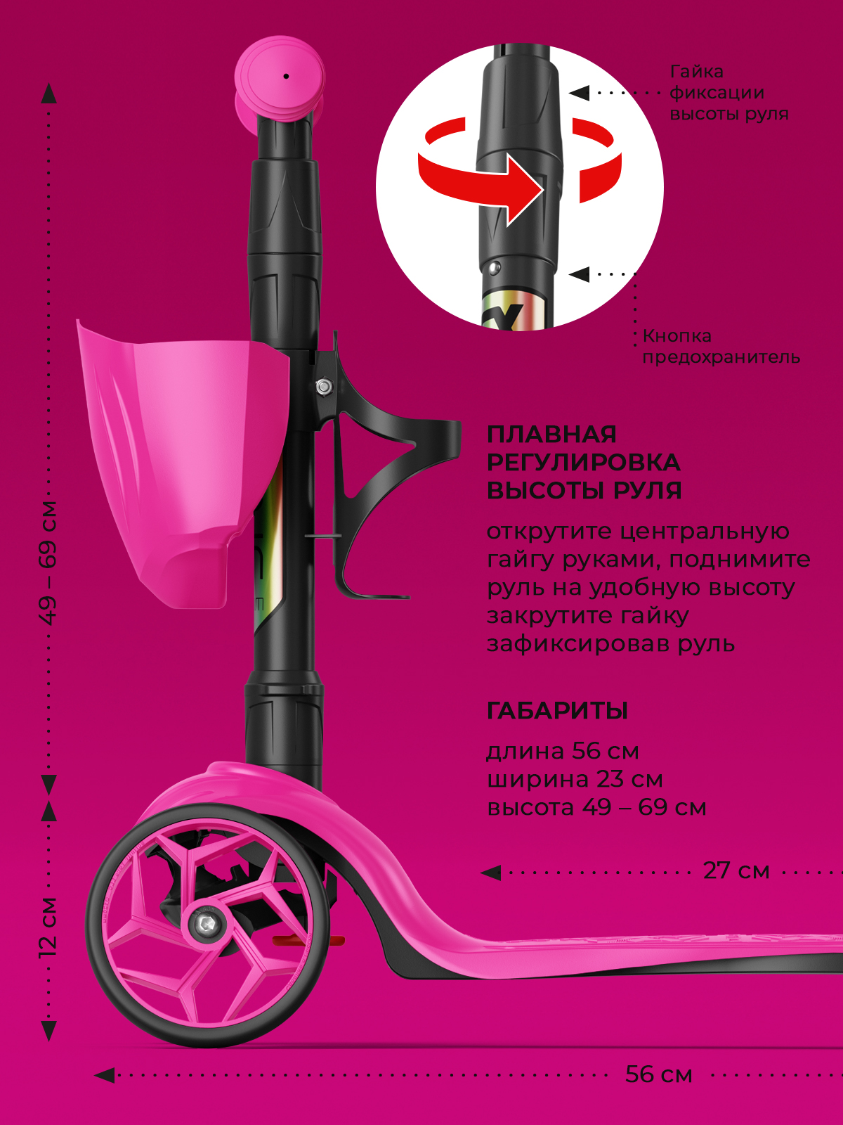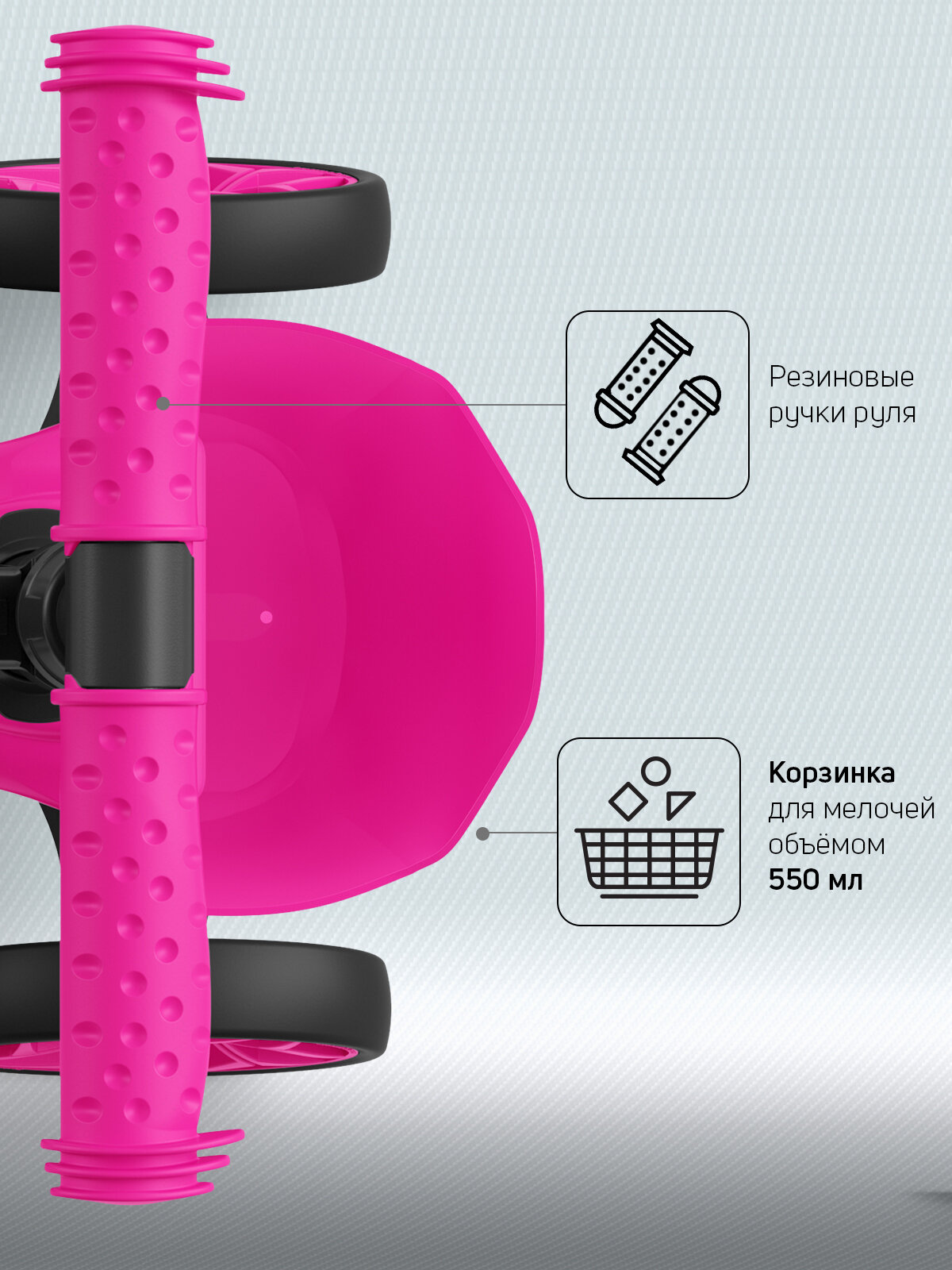 Cамокат трехколесный детский BuggyBoom Alfa Mini XR с корзинкой и подстаканником для бутылок, розовый 004-8057