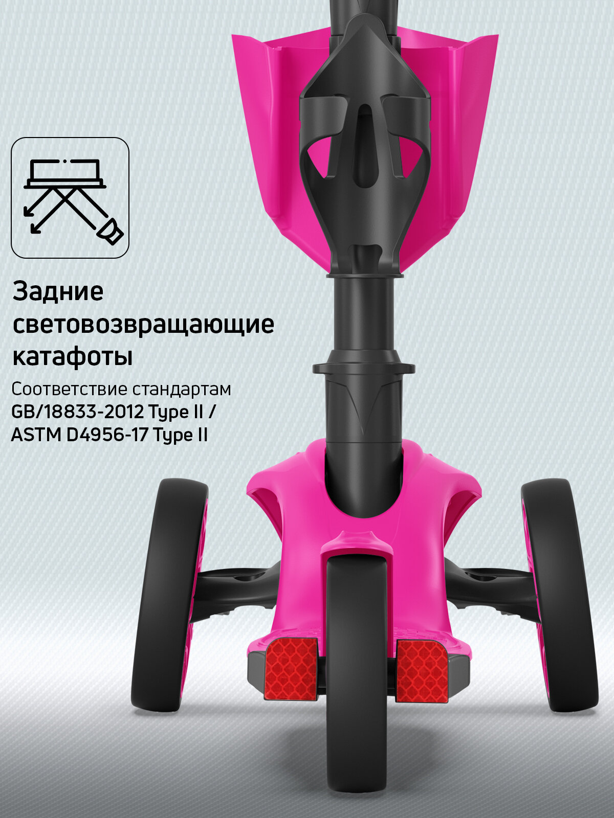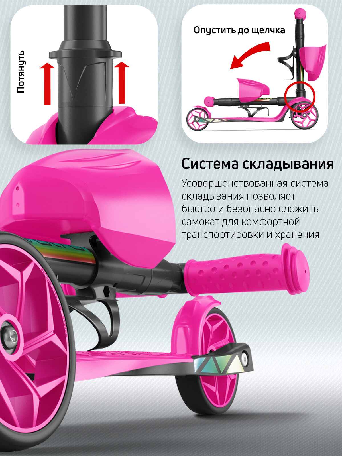 Самокат детский трехколесный COMIRON Yeenot "Зверята", регулируемая складная ручка, светящиеся колеса 110 и 75 мм, нагрузка до 40 кг, розовый / 1 шт.