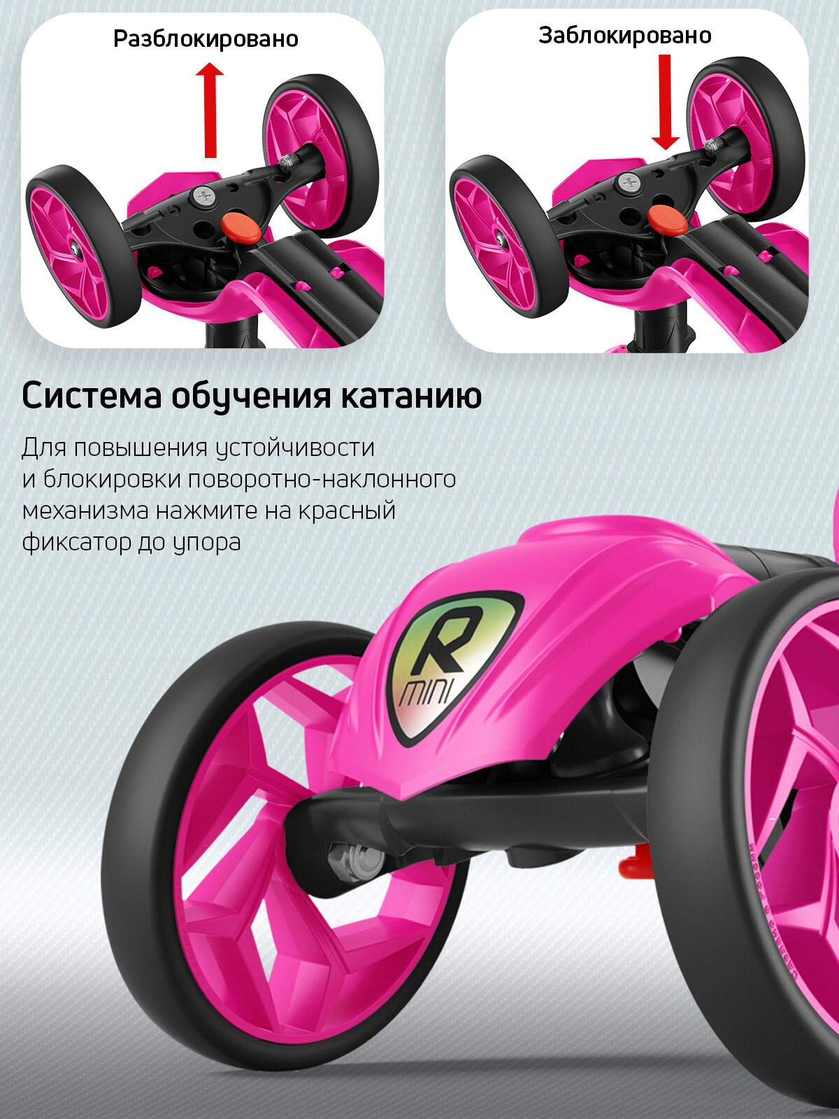 | Плюсы: | имеет фиксатор для передних колёс, что позволяет маленьким детям, которые только учатся кататься не заваливаться на бок и спокойно кататься. |