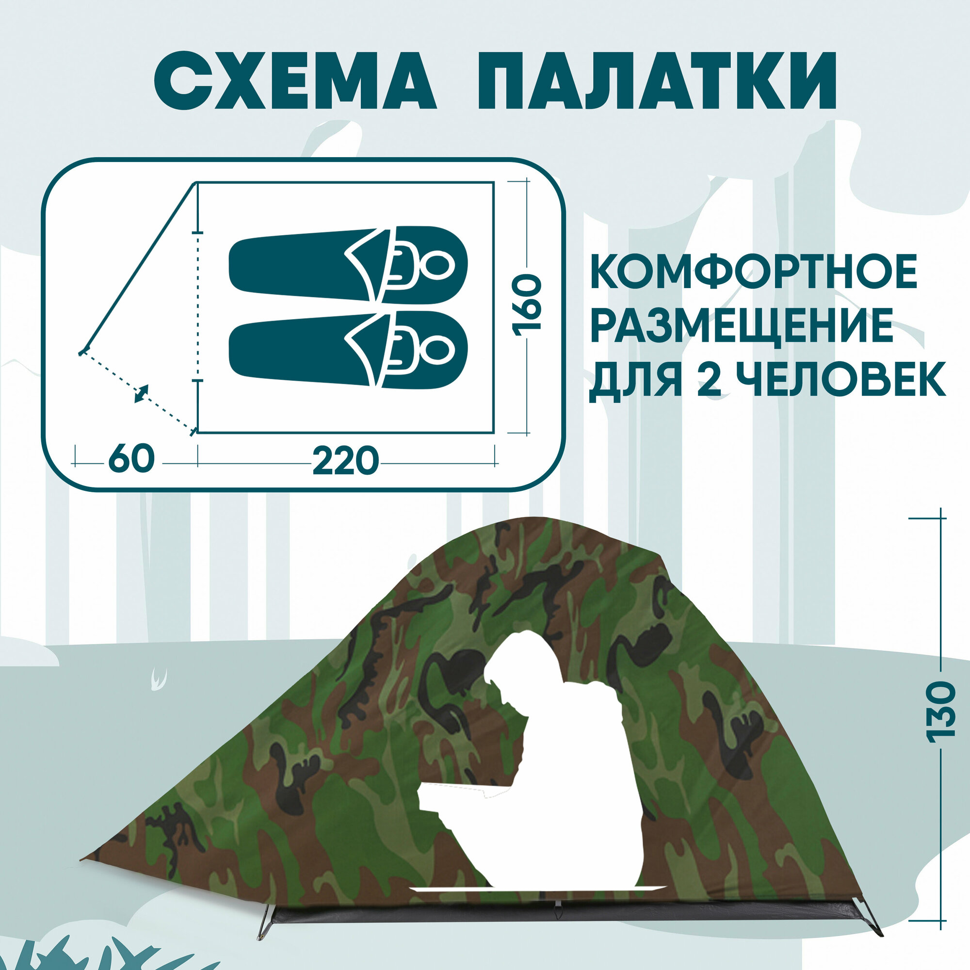 | Габариты внутренней палатки(ДxШxВ) | 210x140x110 cм |