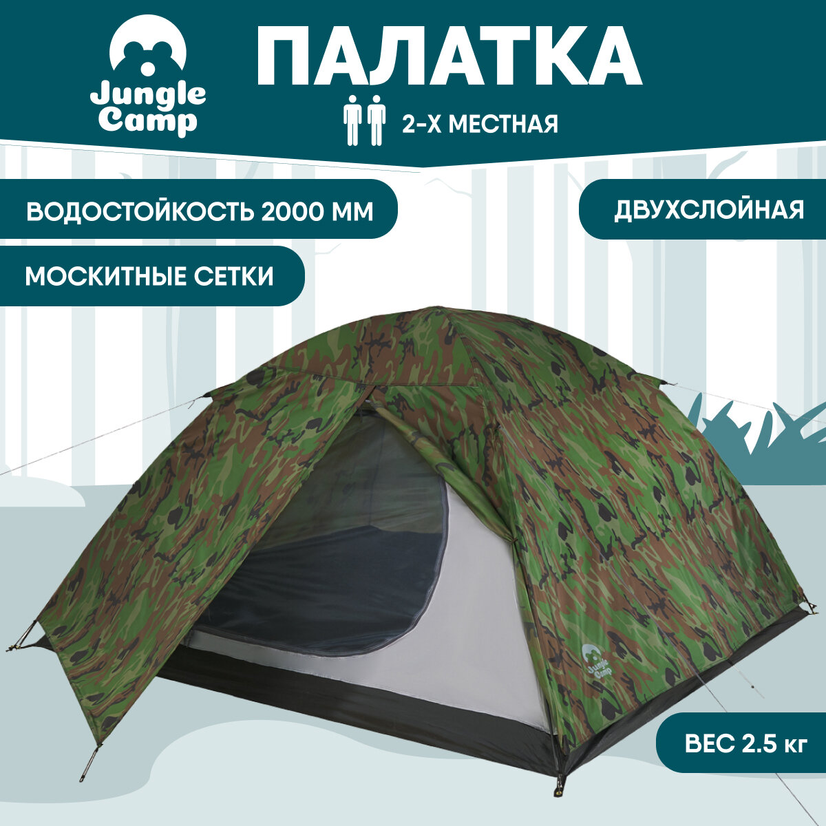 Палатка JUNGLE CAMP "Alaska 2", двухместная, камуфляж, стеклопластик