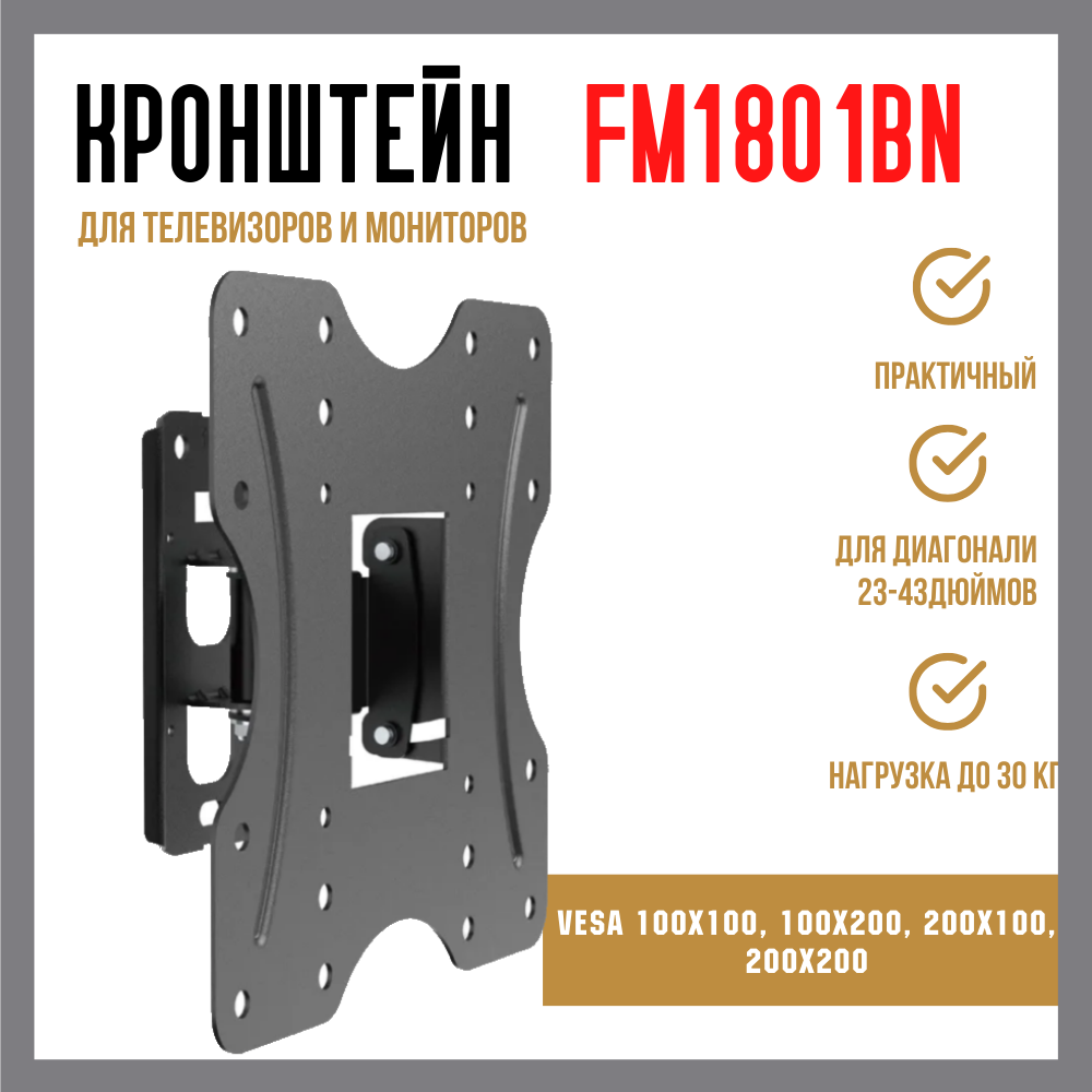 Кронштейн UniTeki FM1801BN наклонно-поворотный для телевизора (монитора) диагональю 23-43", макс. нагрузка до 30 кг, черный