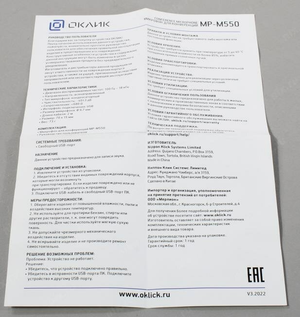 | Отзыв: | Всенаправленный микрофон, улавливает голос во все стороны, не тупит, голос без разрывов, стабильно работает и не тихо передаёт его. |