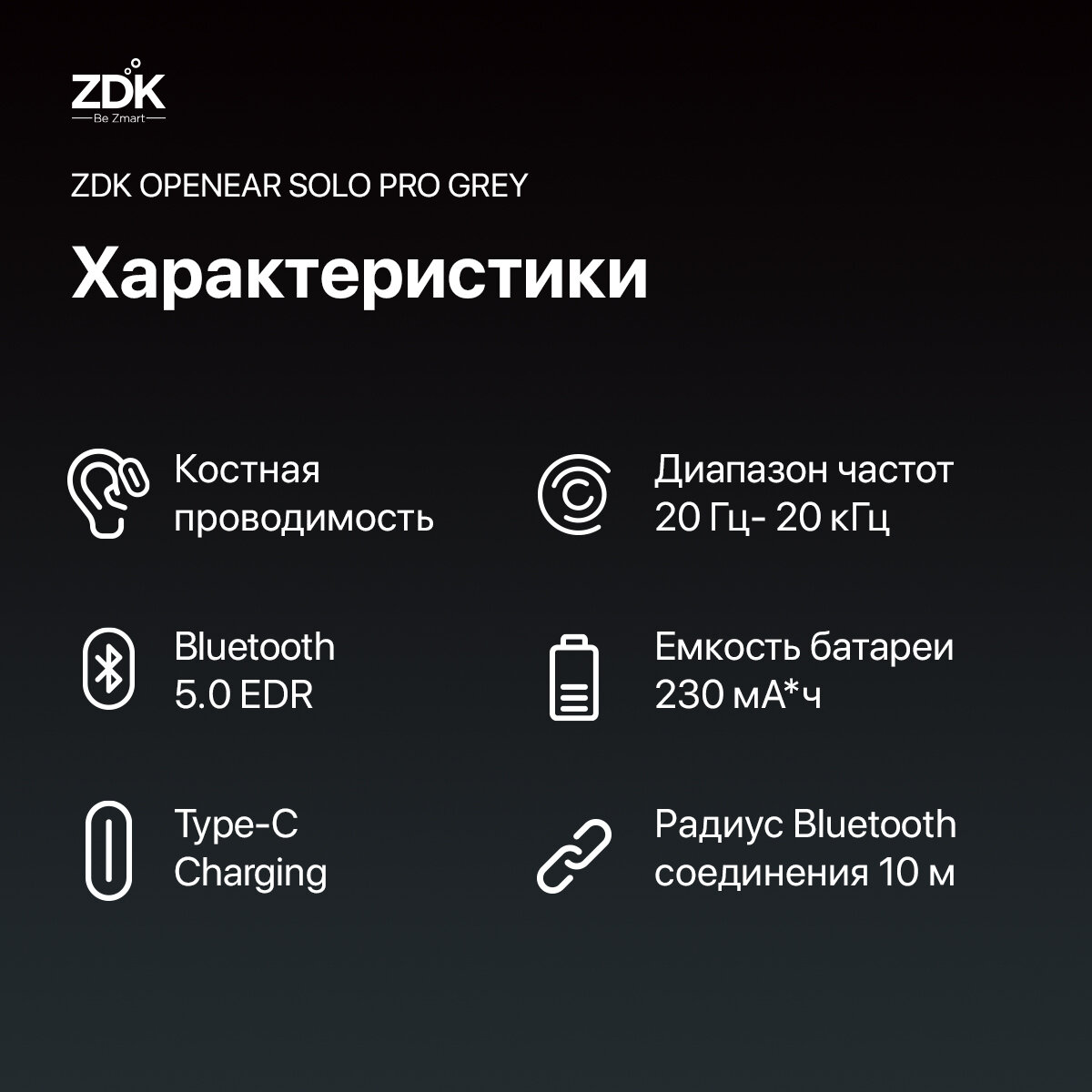 Спортивные наушники ZDK OPENEAR SOLO PRO, беспроводные, серые