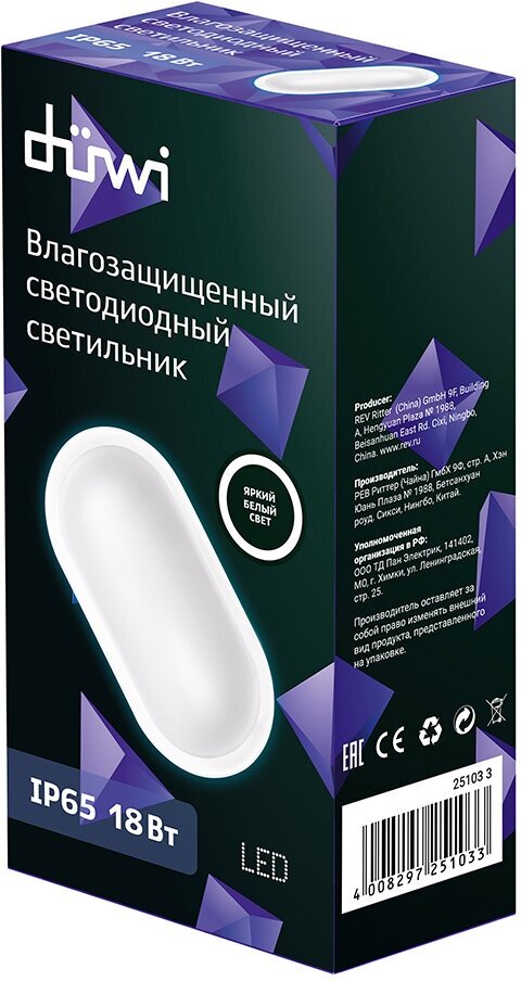 Светильник светодиодный Oval IP65, овальный, 18W, 4000К, влагозащита duwi 25103 3