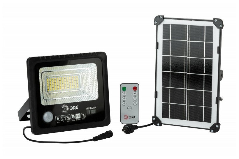 Прожектор светодиодный ЭРА 50Вт, 5000K, 360Лм с датчиком движения, ПДУ, IP65 уличный на солнечной батарее