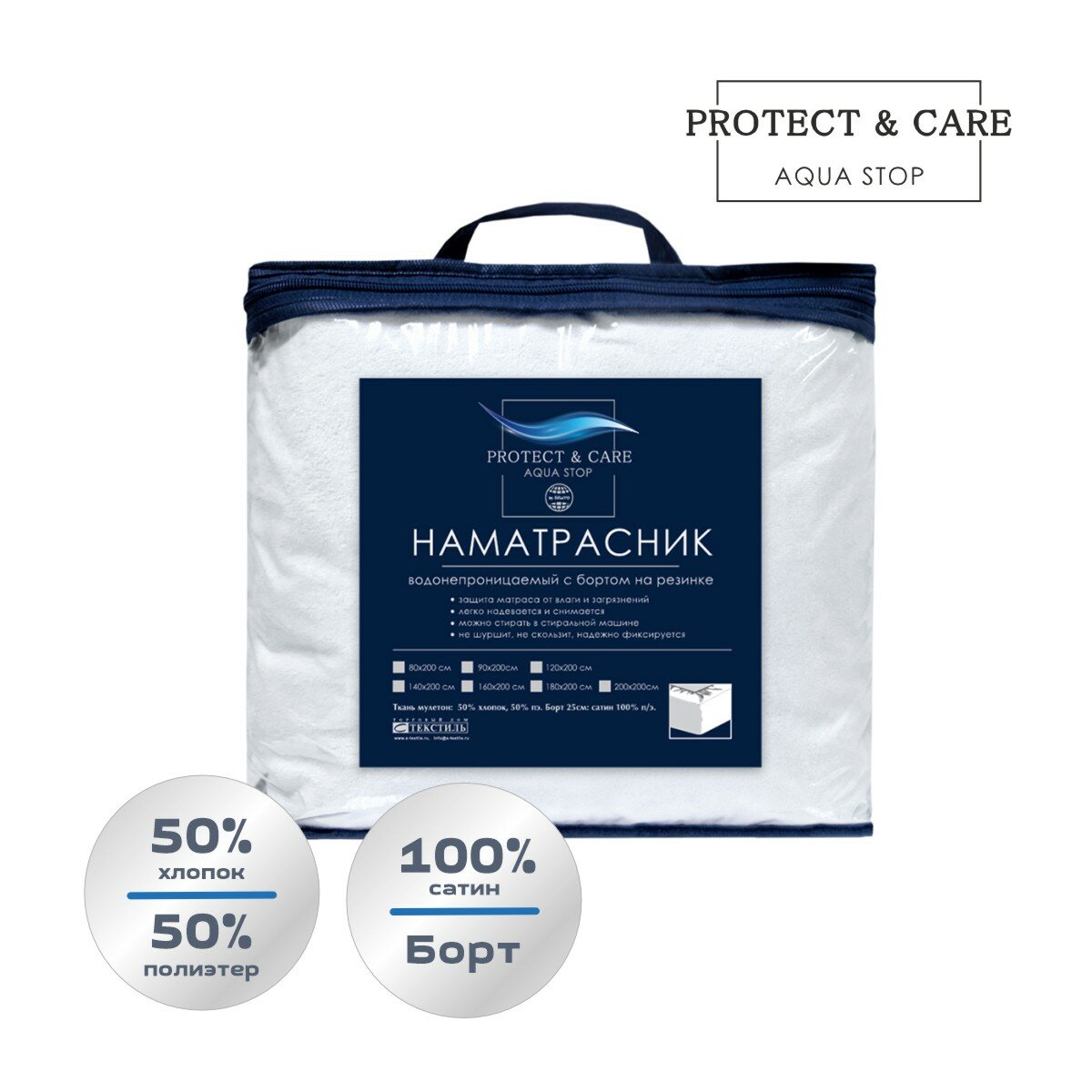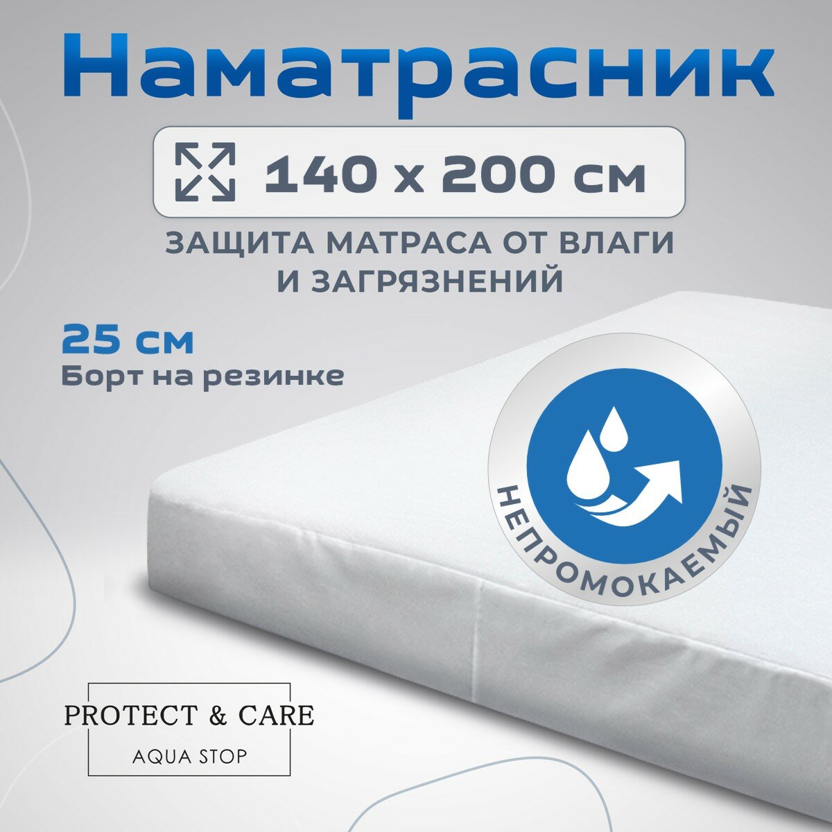 Наматрасник с аква защитой PROTECT & CARE 140х200 см с бортом на резинке