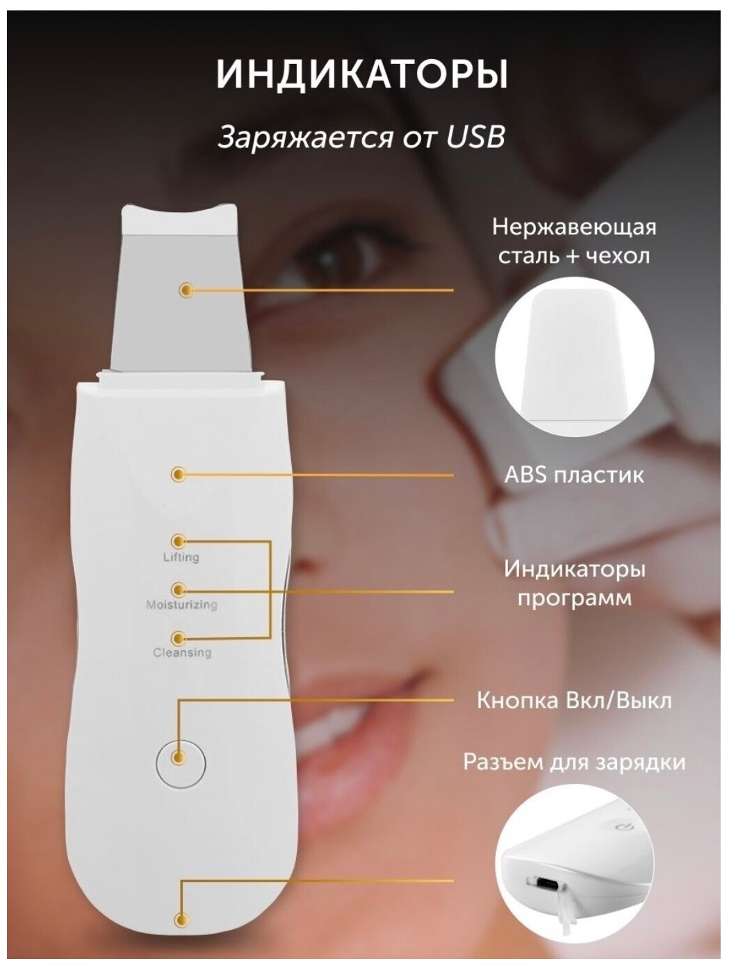Косметологический аппарат для ультразвуковой чистки лица. Ultrasound Clean /+2 насадки/ интересное: