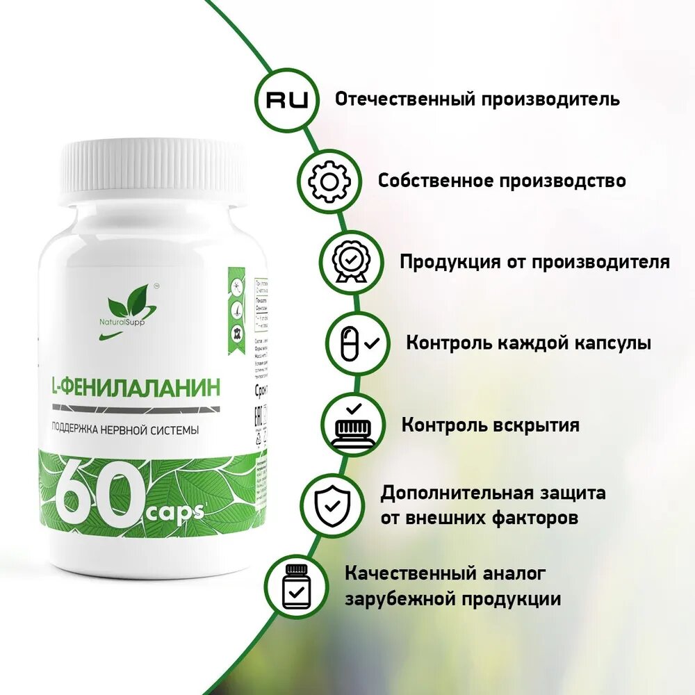 NATURALSUPP L-Phenylalanine 500мг Фенилаланин (60 капсул) интересное: