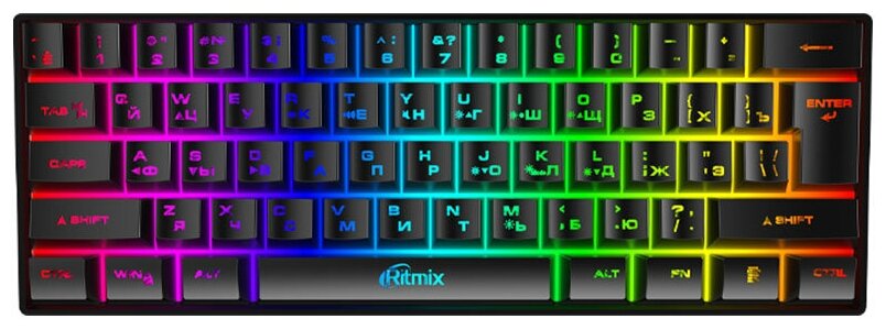 Клавиатура RITMIX RKB-561BL,подсвет,пластик,наст режим и ярк,Подкл проводUSB,ткан.опл.Каб., Кол-во кл.: 61