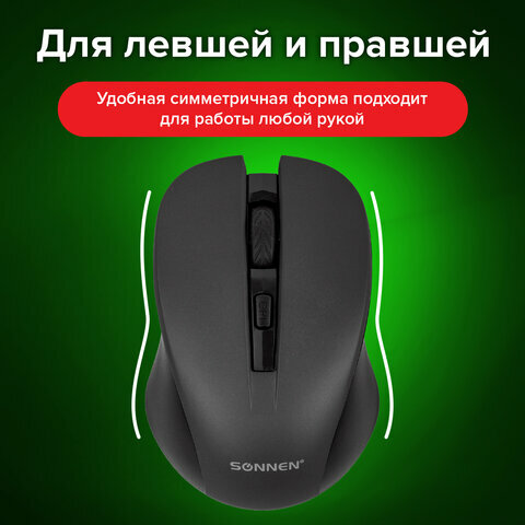Мышь беспроводная с бесшумным кликом SONNEN V18, USB, 800/1200/1600 dpi, 4 кнопки, черная, 513514 интересное: