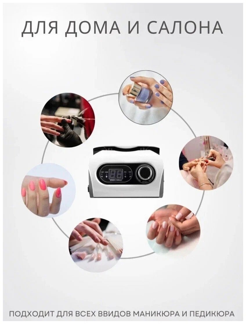 Аппарат для маникюра и педикюра Nail Drill ZS-717, 45000 об/мин, 1 шт., белый