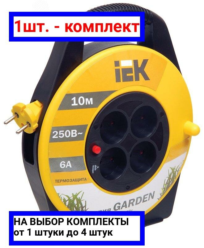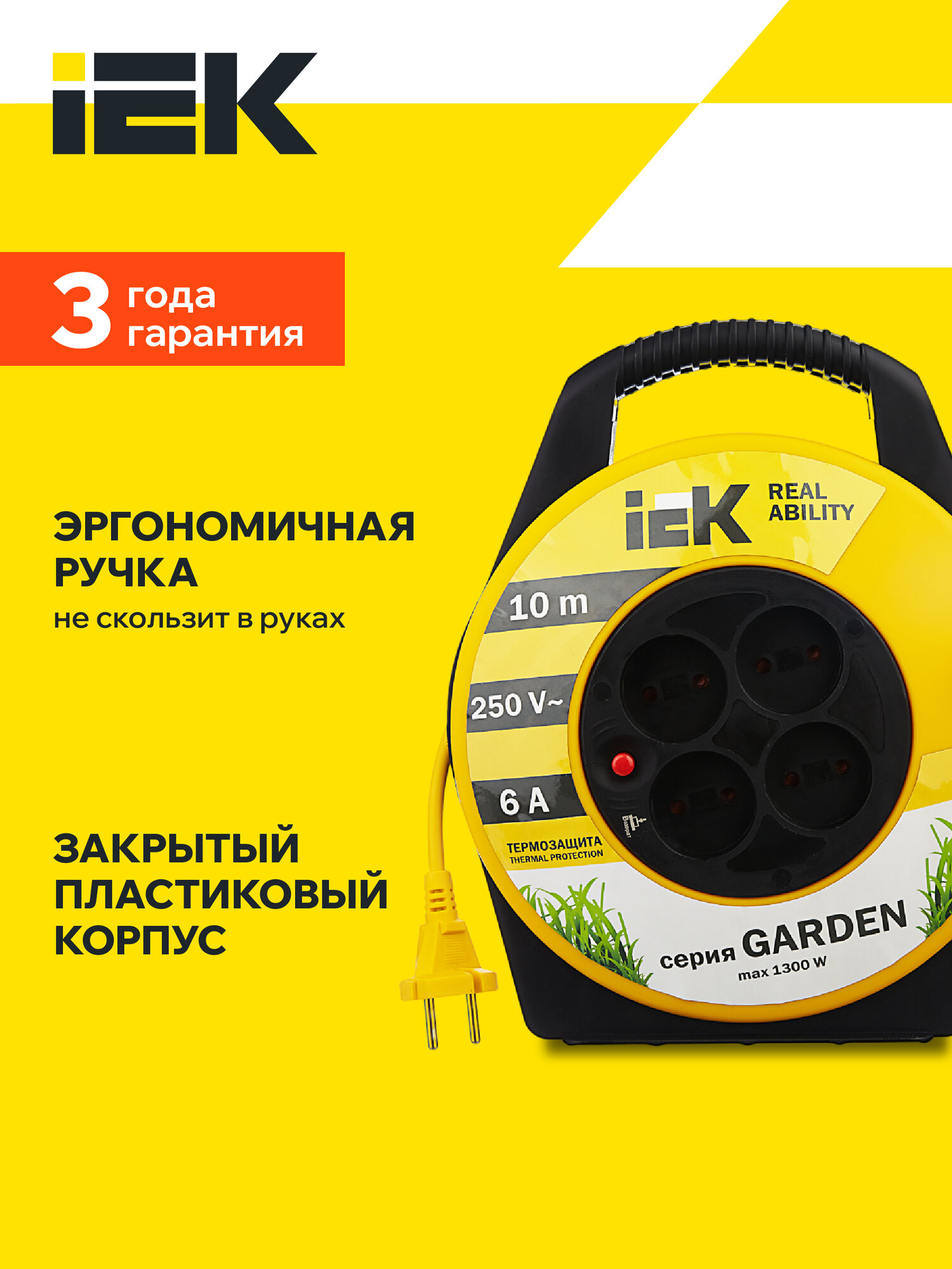 Удлинитель на катушке IEK Garden УК10, 4 розетки, с т/з, без заземления, 2 x 0,75 мм², 10 м