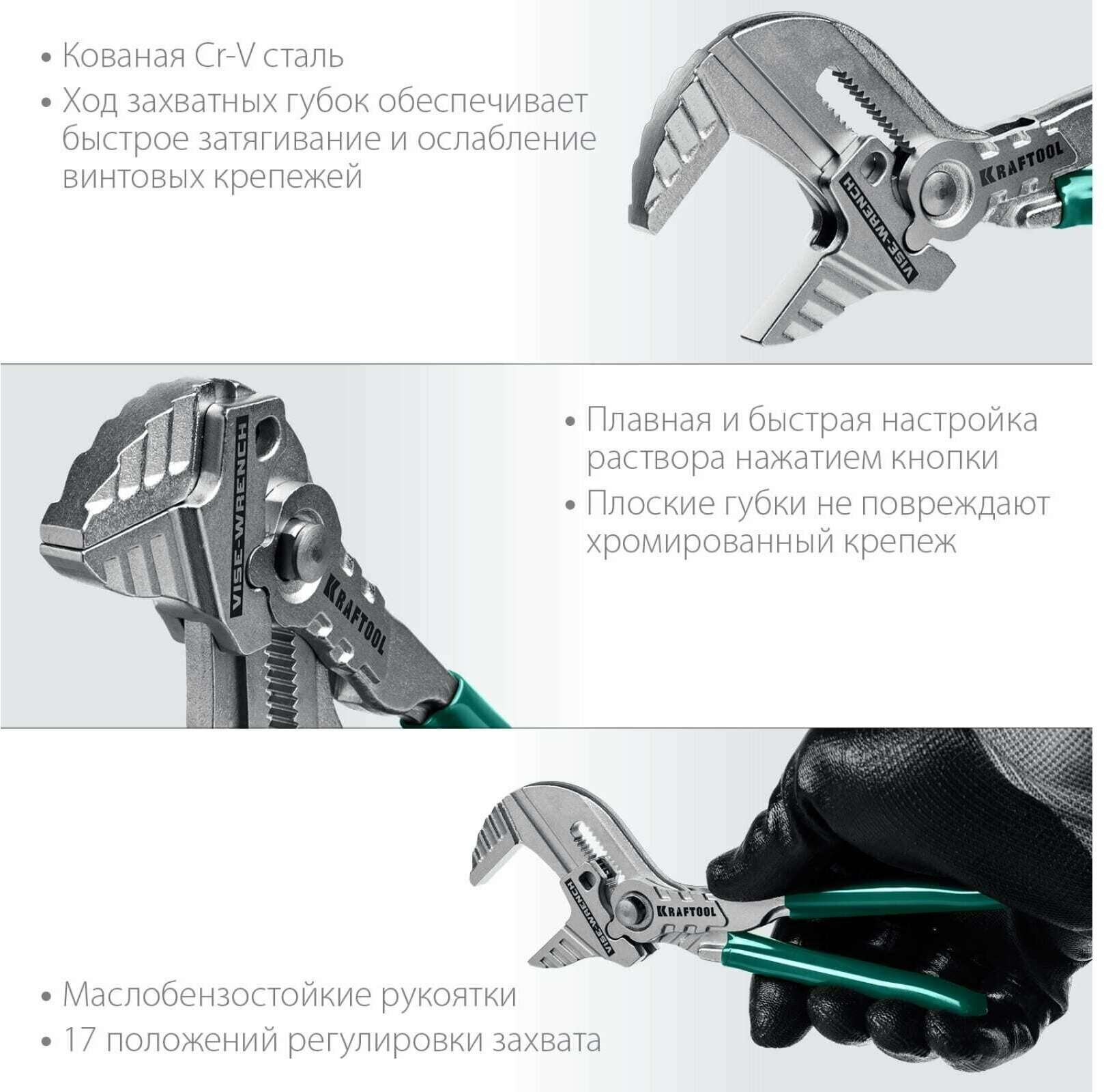 Клещи переставные-гаечный ключ, 180 / 35 мм Kraftool 22063 интересное: