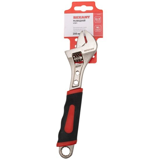 Купить Ключ разводной REXANT 200 мм никелированный с двухкомпонентной рукояткой