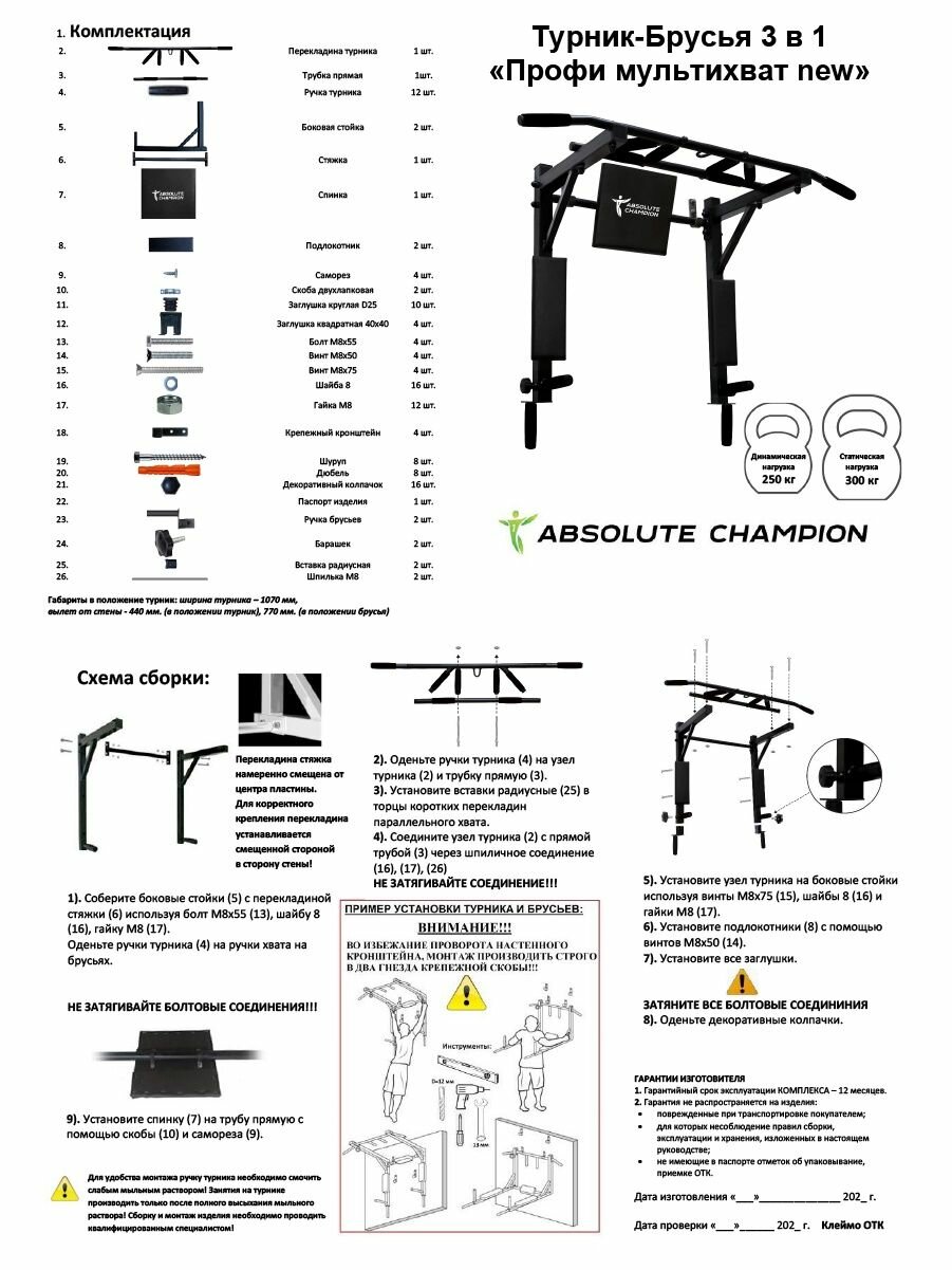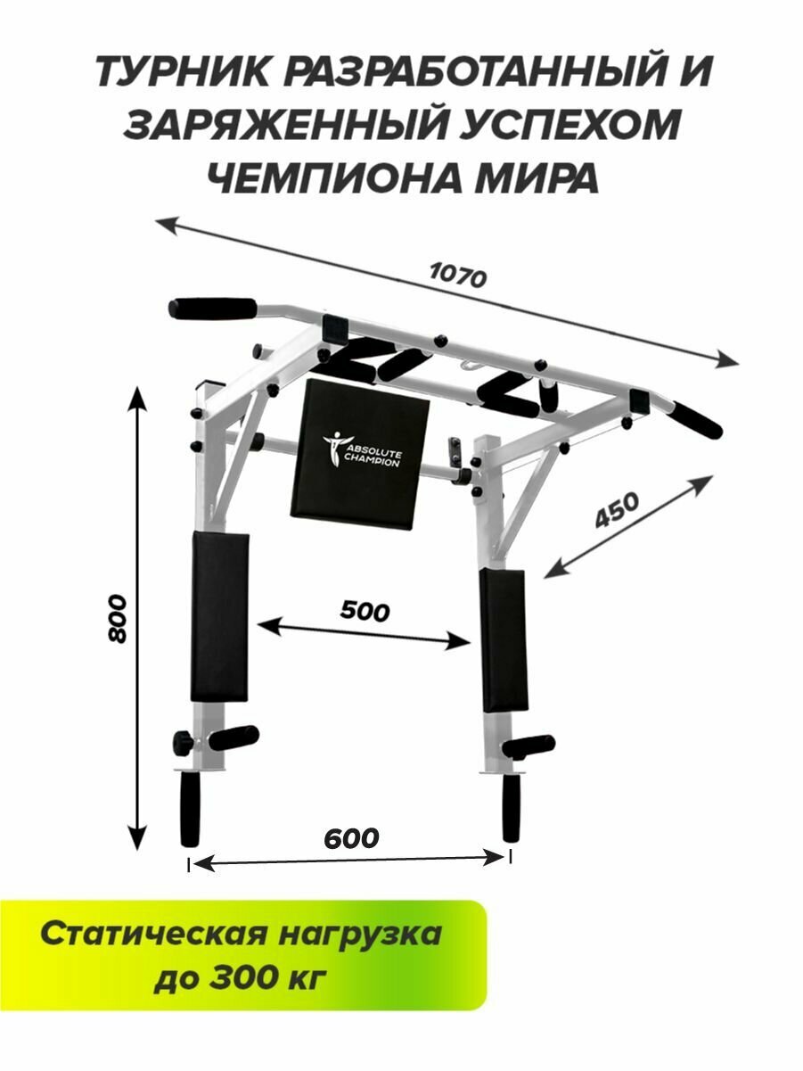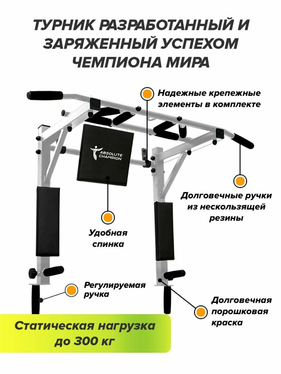 Турник-брусья 3 в 1 Профи (с переворотом) Белый (мультихват) NEW, Absolute Champion интересное: