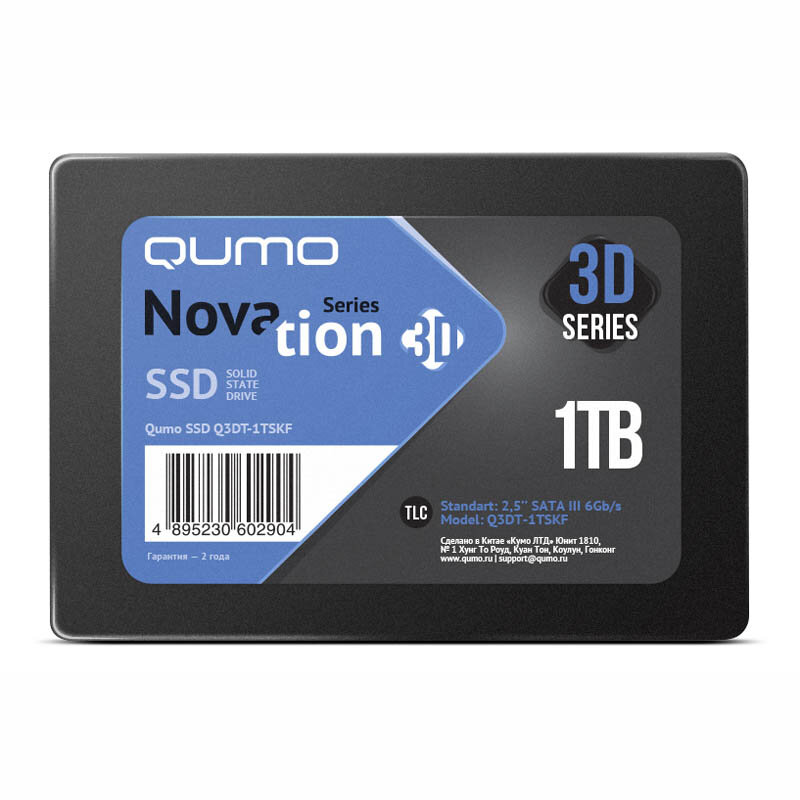 SSD 2.5' Qumo Novation 3D, 1Tb, 3D Tlc, Q3dt-1tsсy, R560Mb/s, W520Mb/s, 400TBW, OEM