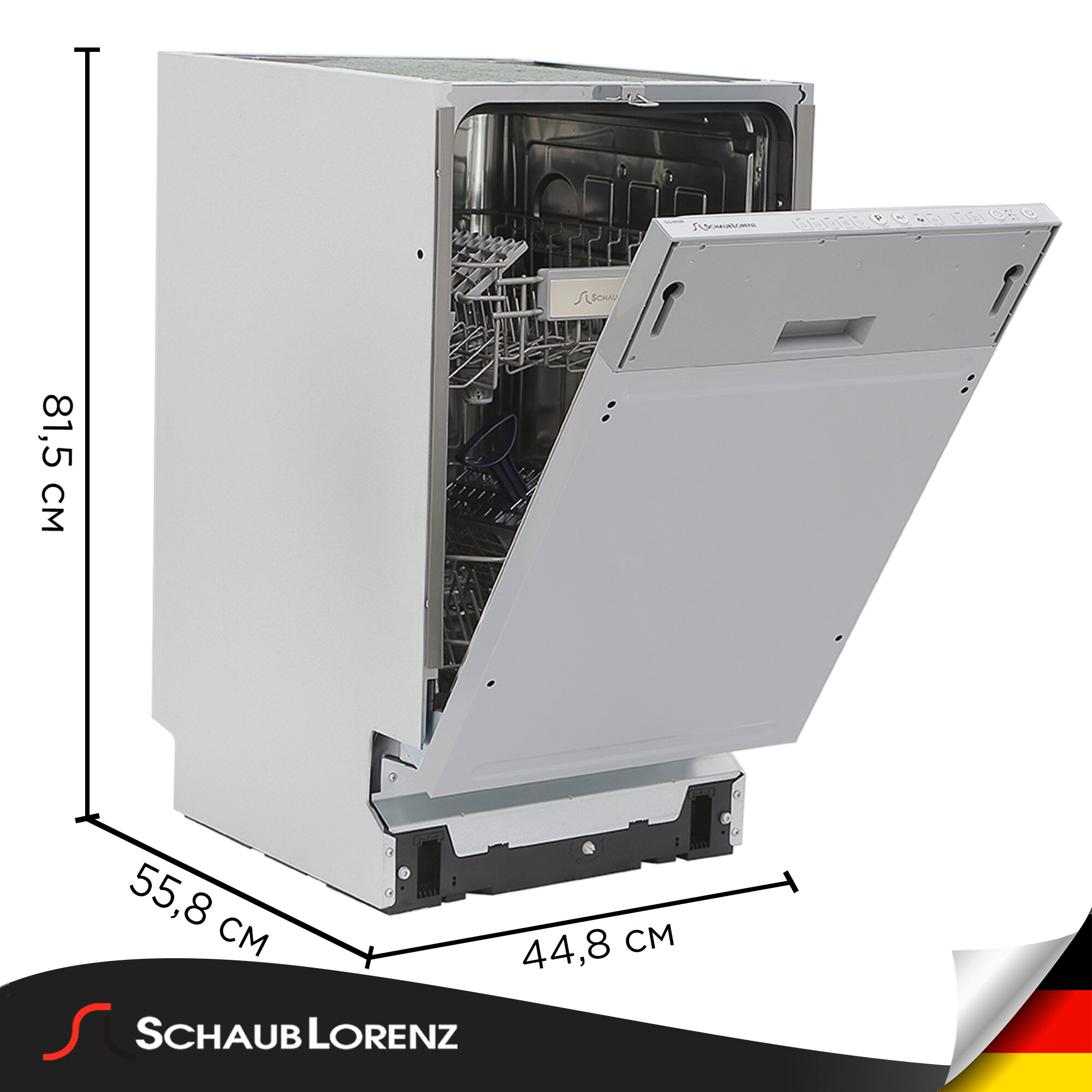 Встраиваемая посудомоечная машина Schaub Lorenz Ширина 45 см, Загрузка 9 комплектов посуды, 5 программ, Защита от перелива воды, Уровень шума 49 дБА, А++; Габаритные размеры (ВхШхГ), мм: 815х448х558