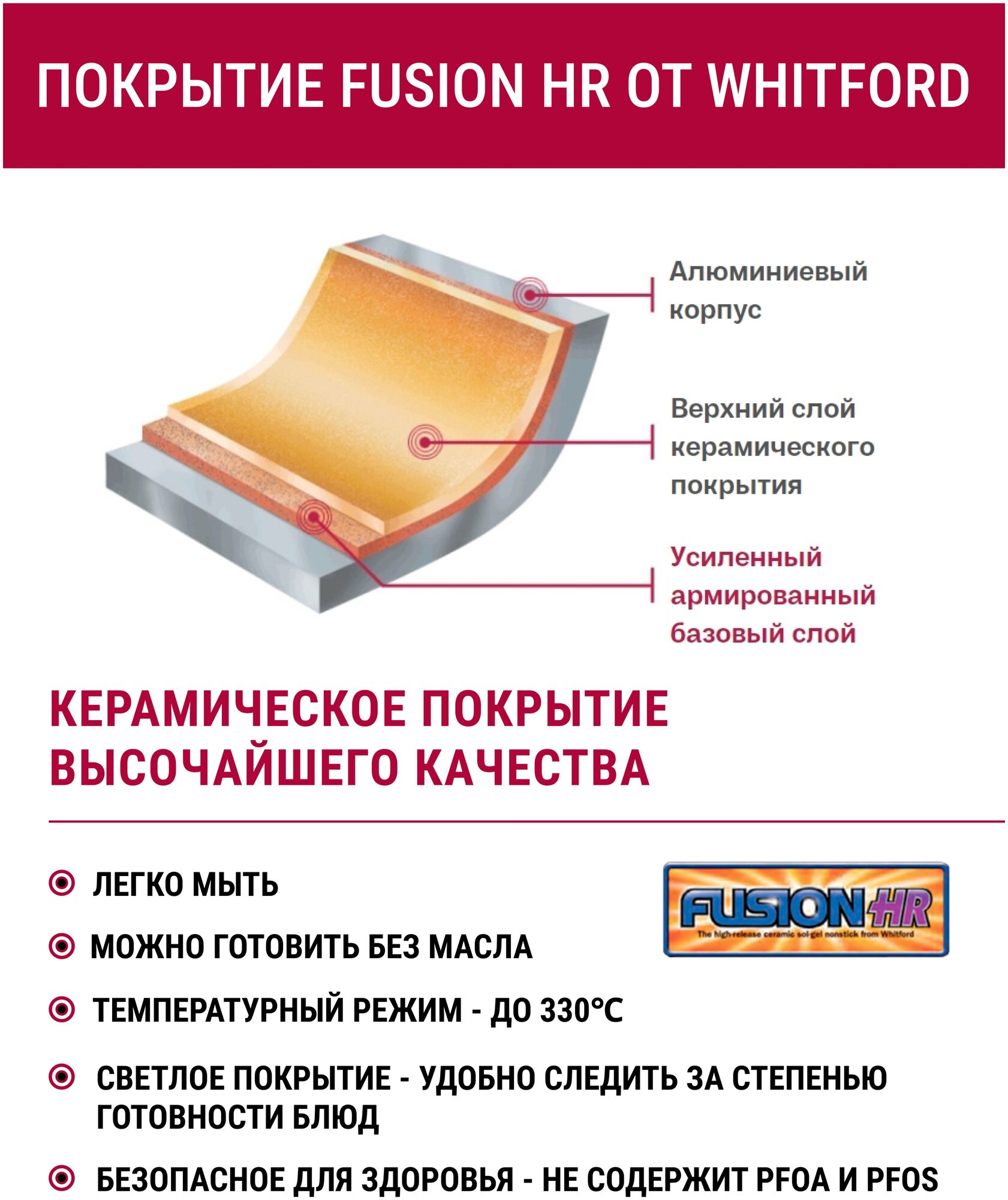 | Плюсы: | Очень прочное покрытие, можно смело накладывать еду металлической ложкой или вилкой. |