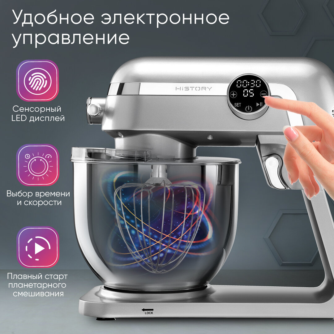 Кухонная машина планетарная HiSTORY IKM-XD323, серебристая интересное: