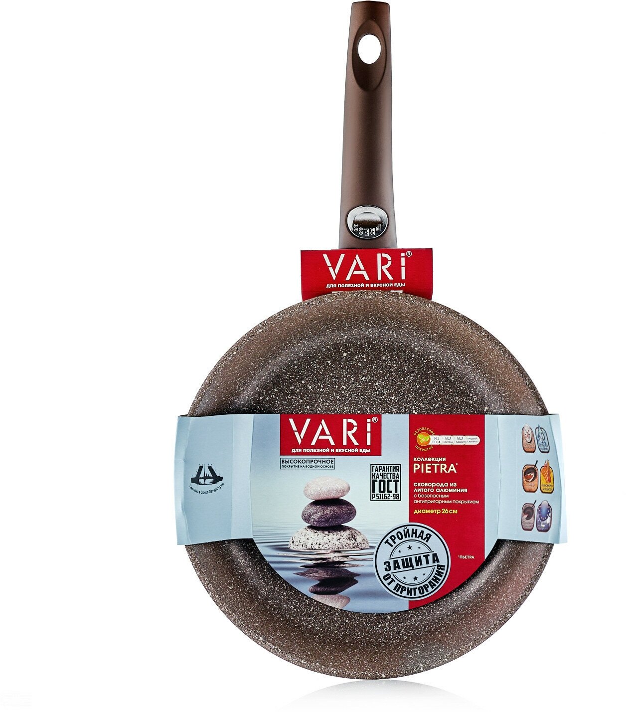 Купить Сковорода Vari Pietra теплый гранит, съемная ручка, 26см (BR31226)