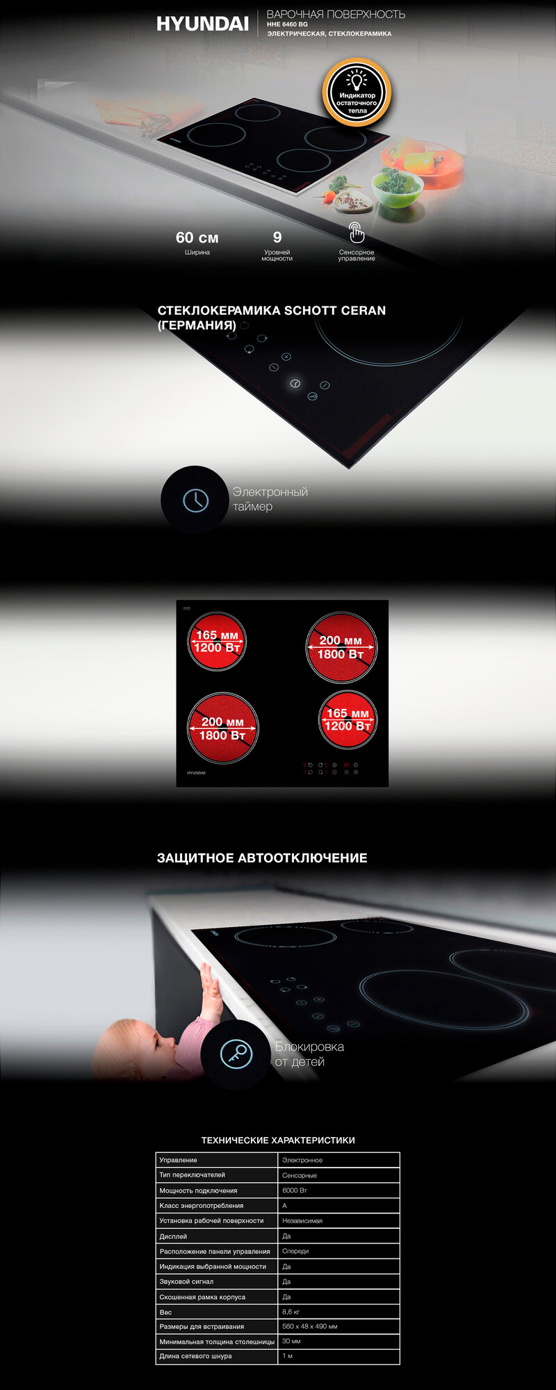 Варочная панель Hyundai HHE 6460 BG интересное: