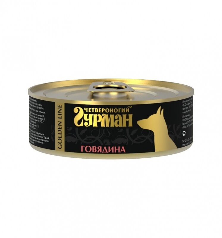 Корм консервированный для собак Четвероногий Гурман "Golden line Говядина", 100 г х 12 шт.