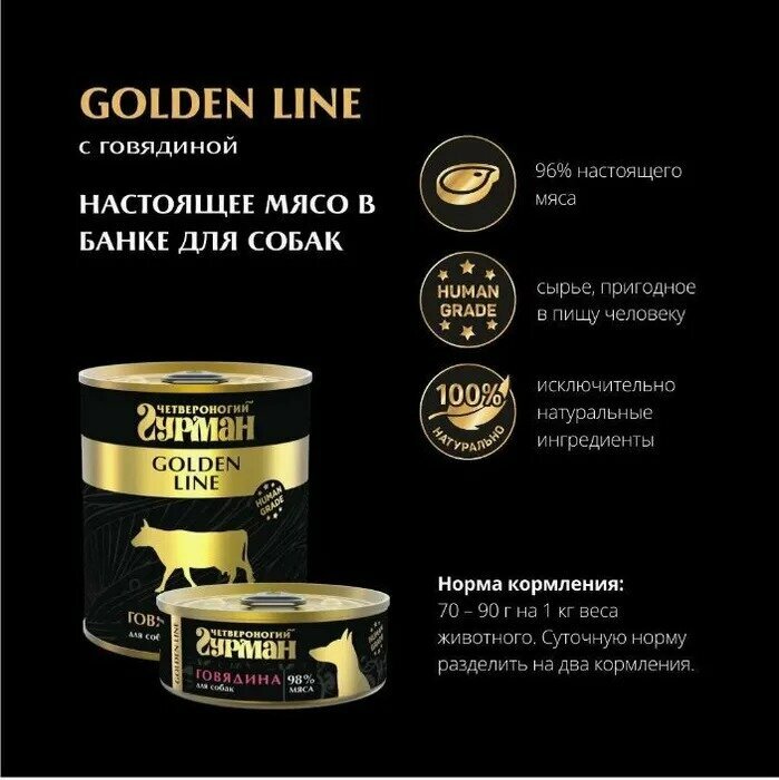 Корм консервированный для собак Четвероногий Гурман "Golden line Говядина", 100 г х 12 шт.
