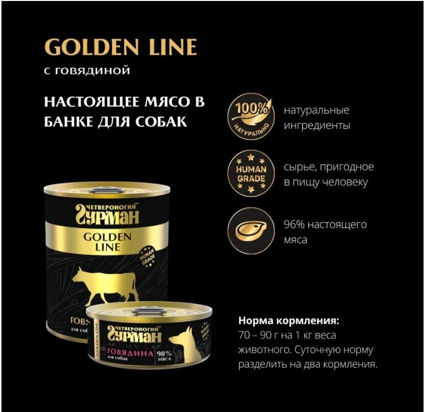 Корм консервированный для собак Четвероногий Гурман "Golden line Говядина", 100 г х 12 шт.