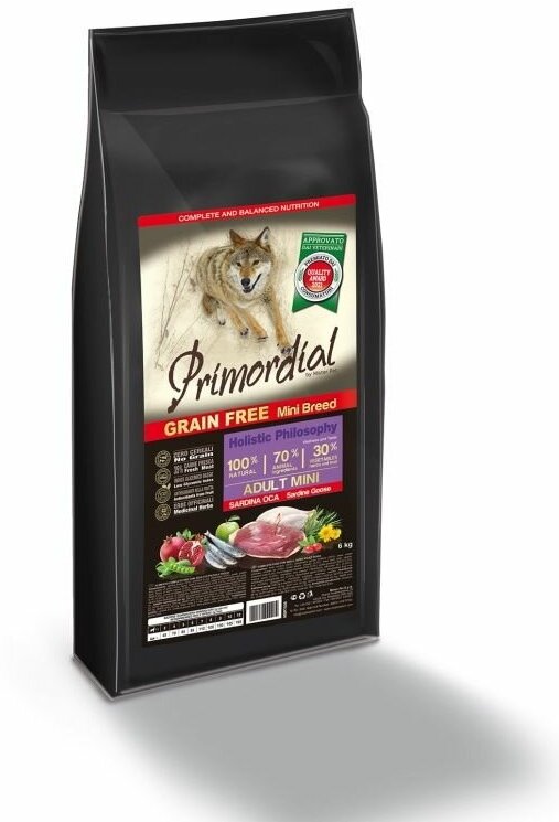 PRIMORDIAL MINI ADULT 6кг сухой корм для собак мелких пород беззерновой сардина гусь