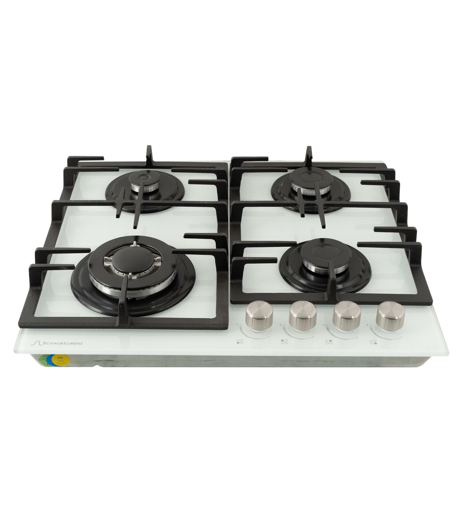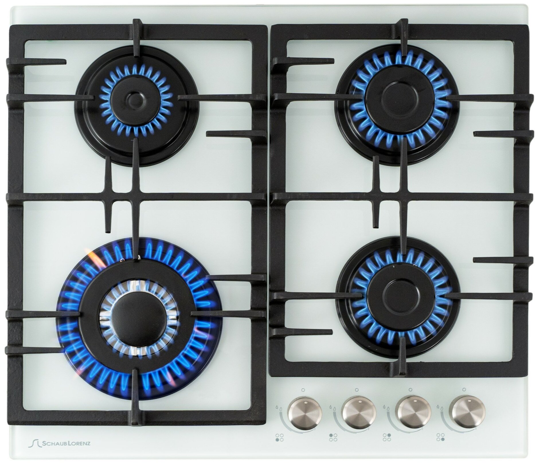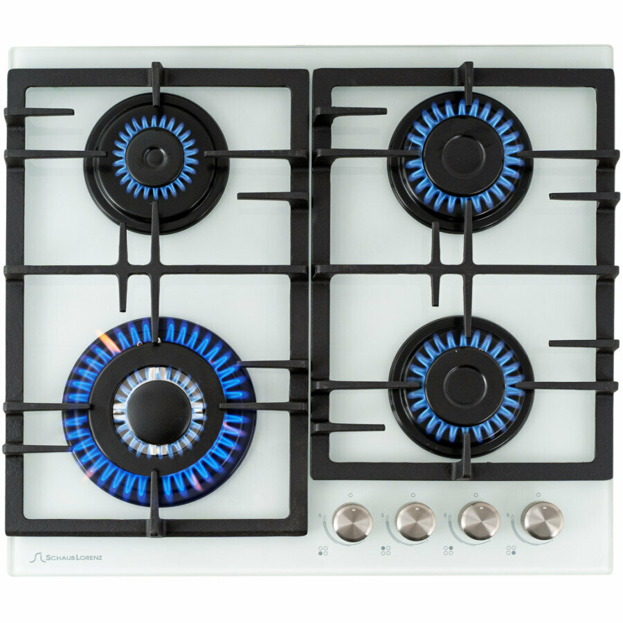 Варочная панель газовая встраиваемая Schaub Lorenz / Шауб Лоренц SLK GL6511 закаленное стекло белый 100х580х510мм 4 конфорки 2 решетки / газ-контроль / электроподжиг / газовая плита