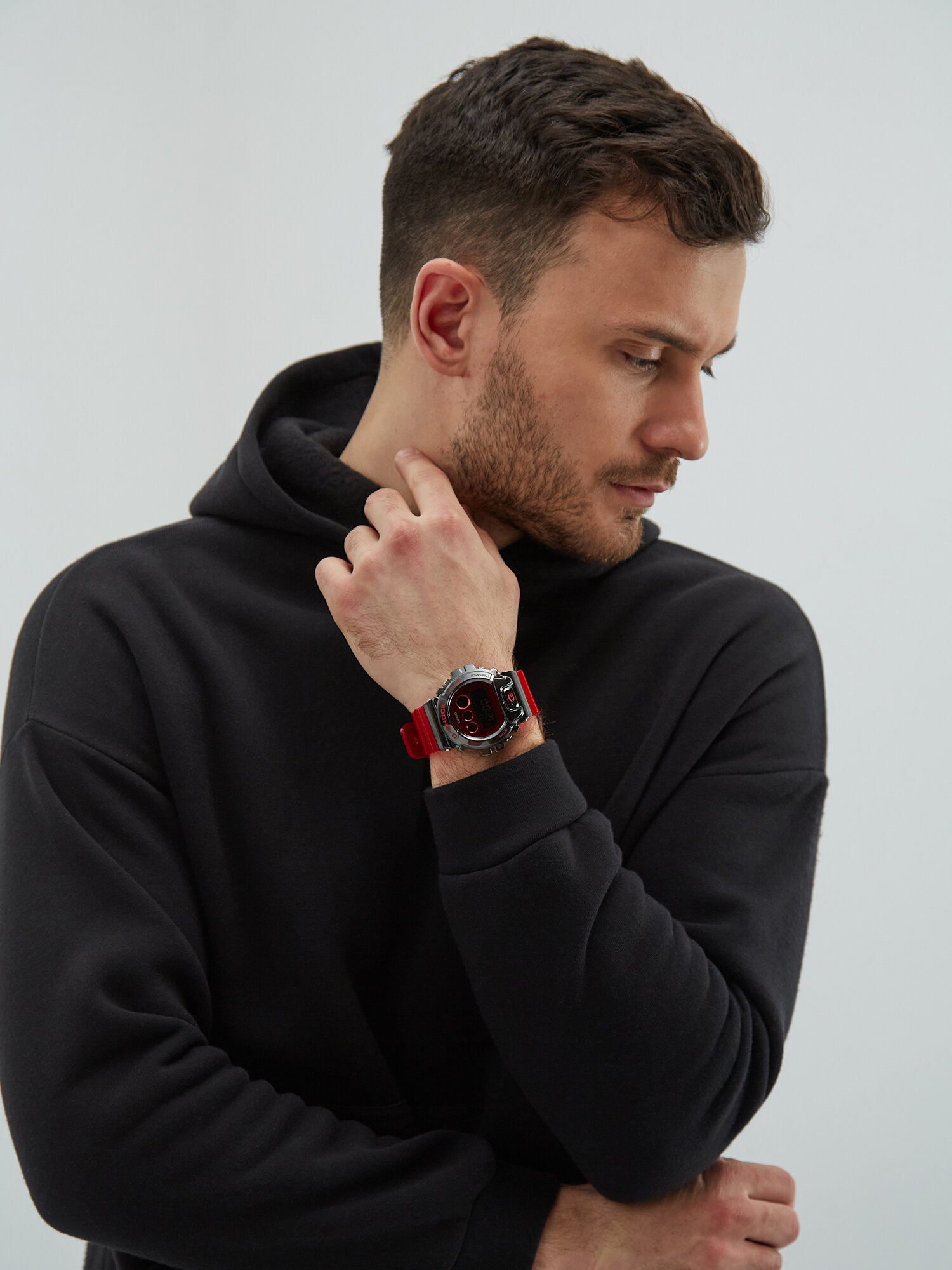 Наручные часы CASIO G-Shock GM-6900B-4 мужские, кварцевые, будильник, секундомер, таймер обратного отсчета, водонепроницаемые, противоударные, подсветка дисплея, красный