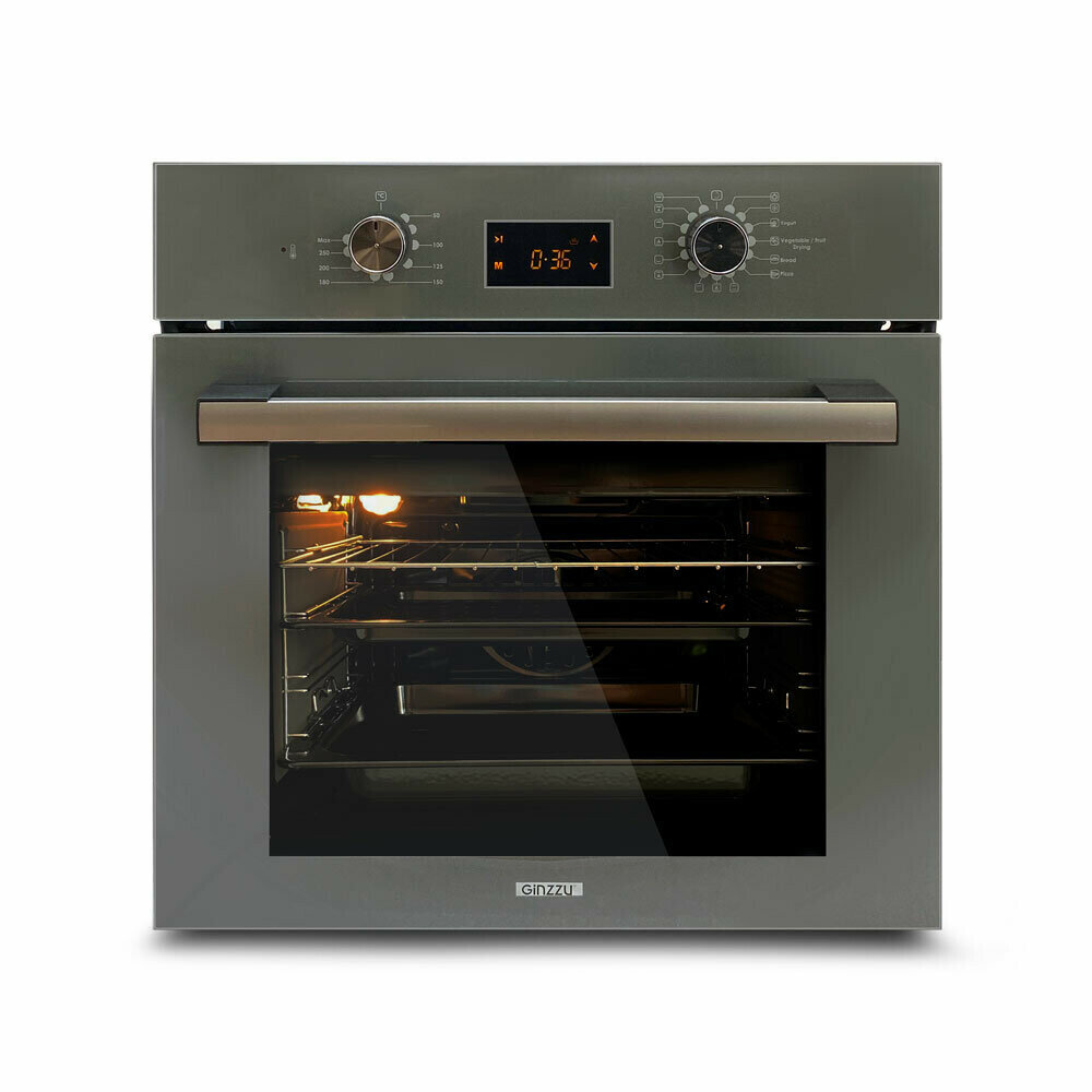 Электрический духовой шкаф GINZZU HOE-219 61л, 13 программ, серый с каталитической очисткой и дисплеем, конвекция, гриль