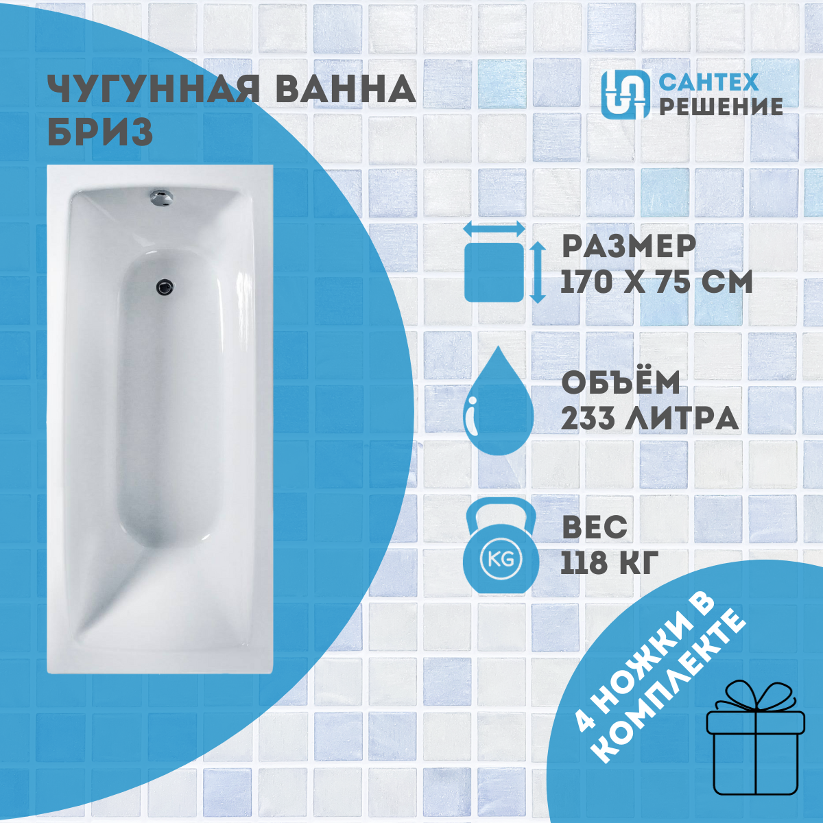 Ванна чугунная Универсал Бриз 170x75 интересное: