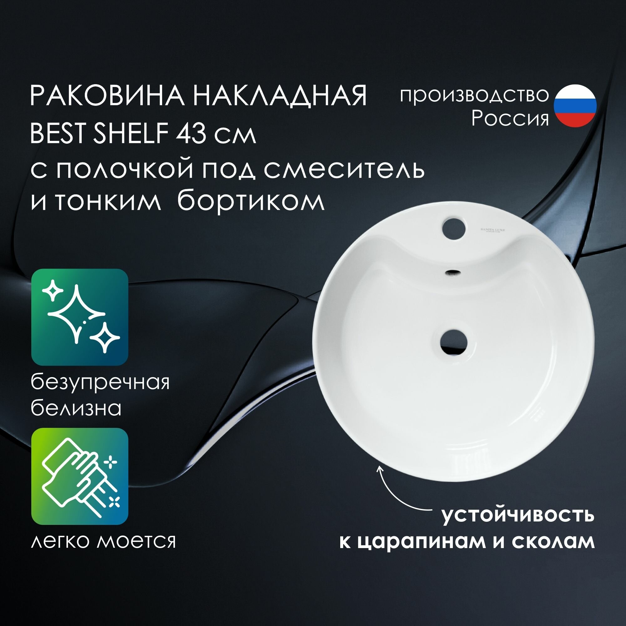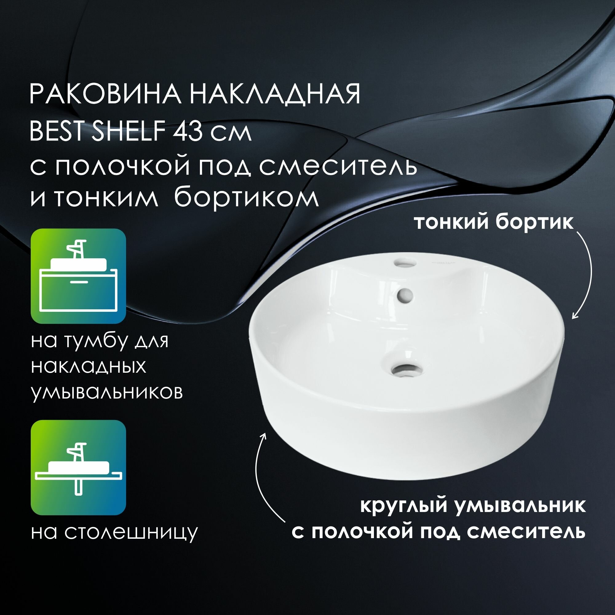 Купить Раковина накладная Sanita luxe Best Shelf 43х43 (WB.CT/Best/43-C.Shelf/WHT.G/S1)