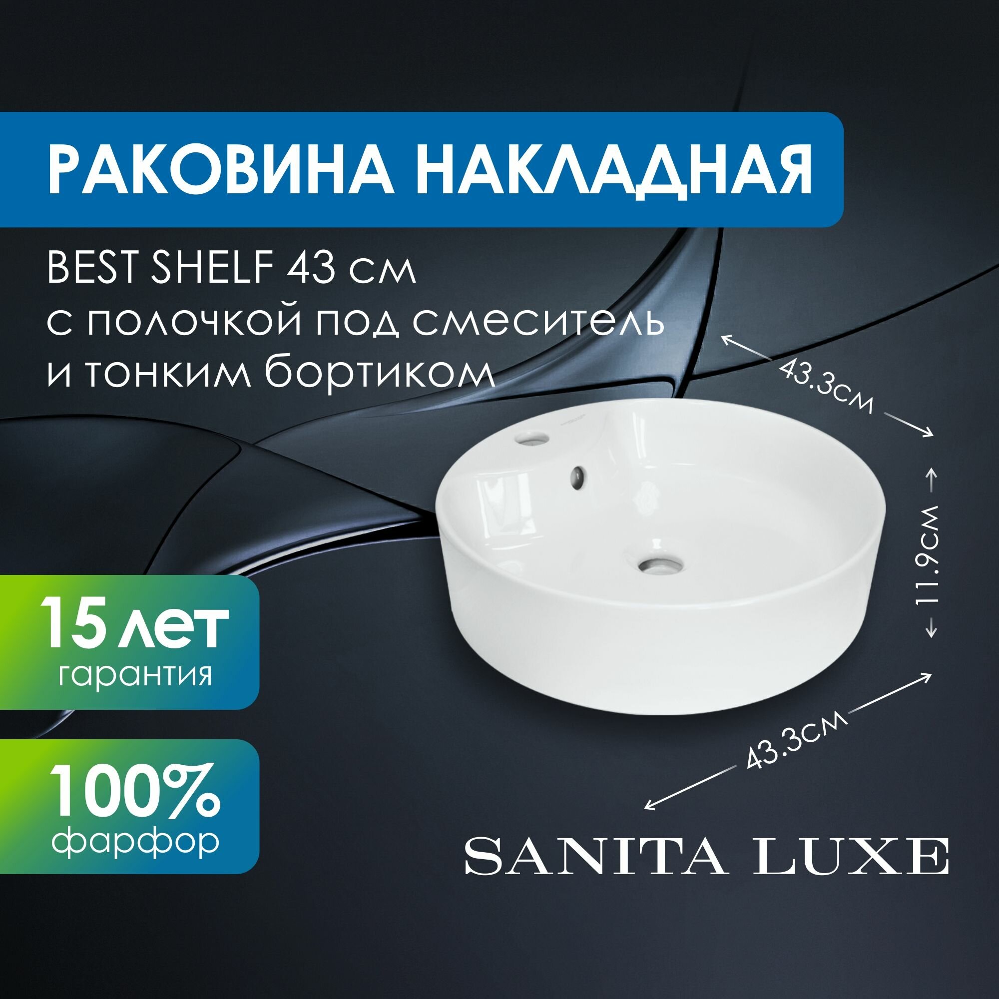 Раковина накладная Sanita Luxe Best 43 SLF ВКС, d 43,3 x 11,9 см, белая