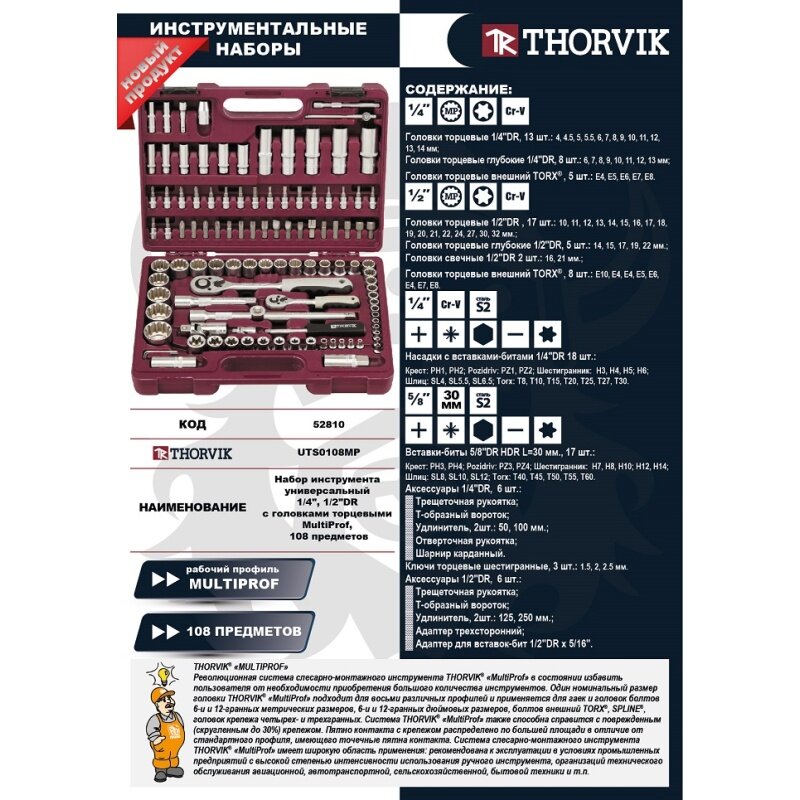 UTS0108MP Набор инструмента универсальный 1/4", 1/2"DR с головками торцевыми MultiProf, 108 предметов Thorvik