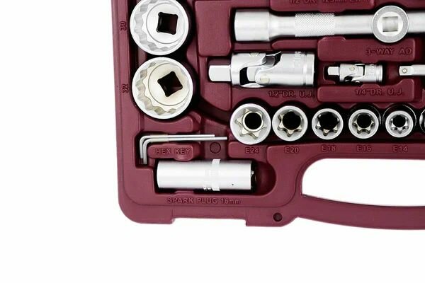 | Головки торцевые подробно | 1/4": 4, 4.5, 5, 5.5, 6, 7, 8, 9, 10, 11, 12, 13, 14 мм; длинные 1/4": 6, 7, 8, 9, 10, 11, 12, 13 мм; Torx 1/4": Е4, Е5, Е6, Е7, Е8; с битами 1/4": SL4, SL5.5, SL6.5, H3, H4, H5, H6, T8, T10, T15, T20, T25, Т27, T30, PH1, PH2, PZ1, PZ2; трещотка 1/4"; вороток т-образный 1/4"; свечная 3/8" (spline): 14 мм; удлинитель 1/4": 50, 100 мм; карданный шарнир 1/4"; 1/2" (spline): 10, 11, 12, 13, 14, 15, 16, 17, 18, 19, 21, 22, 24, 27, 30, 32 мм; длинные 1/2" (spline): 14, 15, 17, 19, 22 мм; Torx 1/2": Е10, Е11, Е12, Е14, Е16, Е18, Е20, Е22, Е24; трещотка 1/2"; карданный шарнир 1/2"; свечные 1/2": 16, 21 мм; удлинитель 1/2": 125, 250 мм |