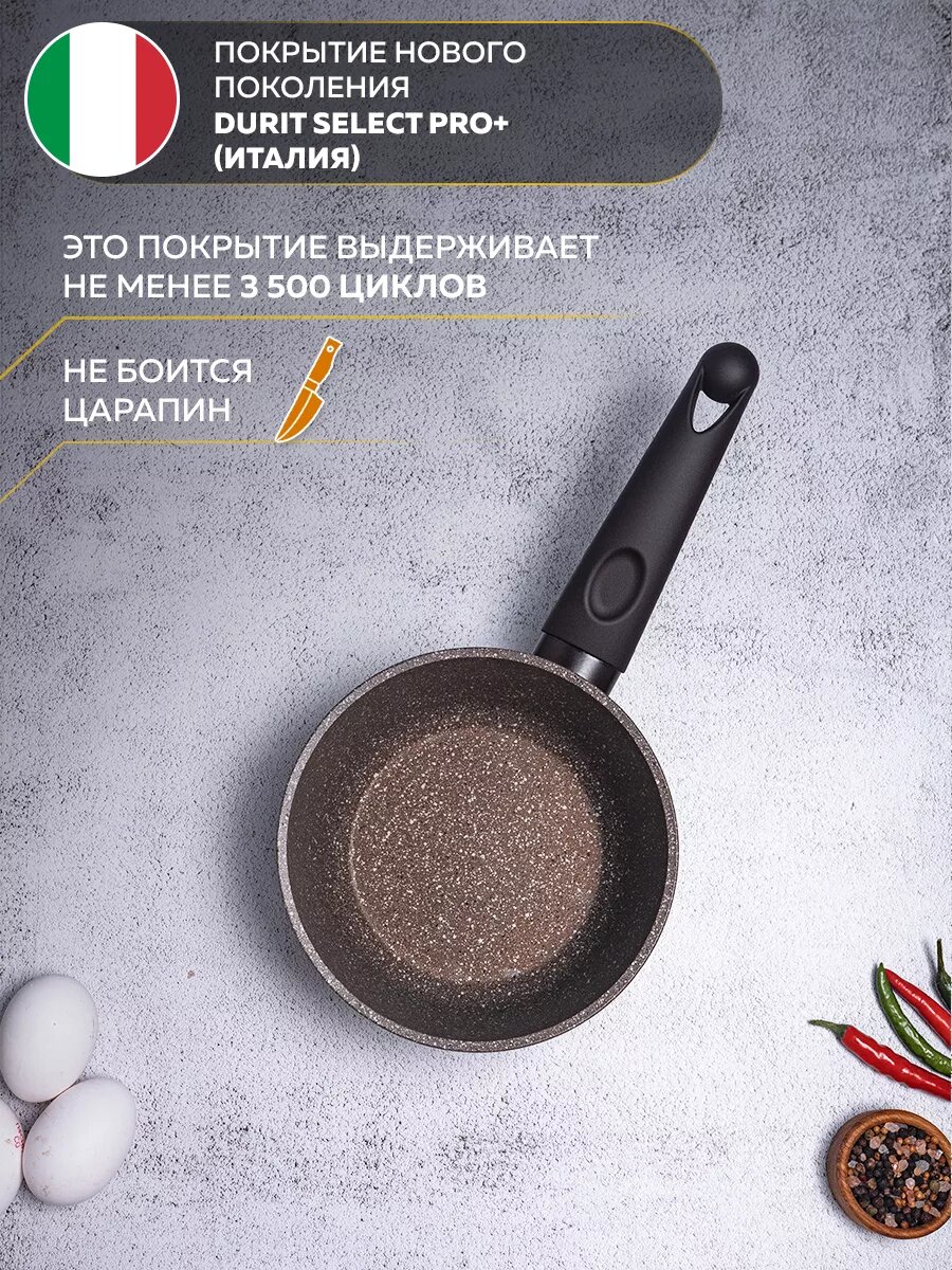Ковш TimA ART GRANIT с антипригарным каменным покрытием последнего поколения ILAG, диаметр 16см, 1,2 л, производство Италия